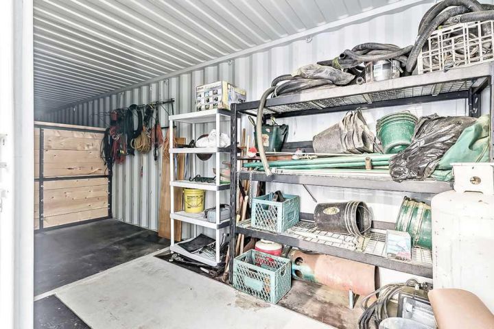 40' Seacan, 3 horse shelters, 2 fuel tanks, all metal panels, 2 stalls in barn. 3 automatic livestock waterers.