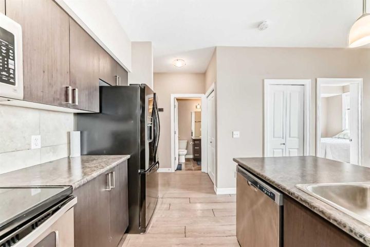 Modern Apartment for Sale in Copperfield Exceptional Living in a Great Neighbourhood! Welcome to your new home in the vibrant community of Copperfield. This beautifully maintained apartment is the perfect blend of style, comfort, and convenience. Whether you are a first-time buyer, downsizing, or searching for a smart investment, this property is sure to impress. The open-concept living and dining area is ideal for relaxing. The modern kitchen space with a large island makes meal preparation a pleasure. The master bedroom features a walk-in closet for ample storage. The bright, bathroom is accessible through the master bedroom. The private balcony is perfect for enjoying quiet evenings with a great view. In-suite laundry adds to your convenience. The unit comes with one parking stall and a storage locker. You will feel right at home. Neighbourhood Highlights, Copperfield is renowned for its friendly atmosphere and scenic parks. Residents enjoy easy access to schools, shops, and public transit, as well as picturesque walking trails, playgrounds, and local cafes just steps away. Quick access to major roadways means commuting is simple and efficient.