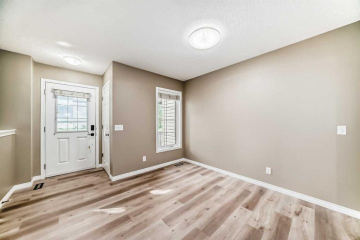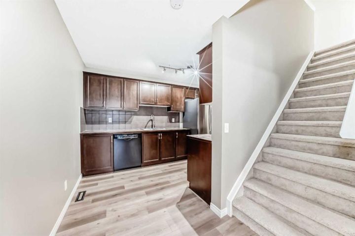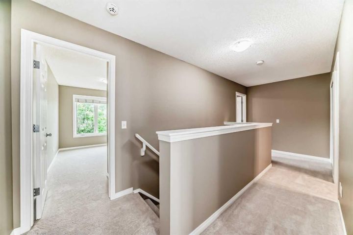 NO CONDO FEES - FULLY FINISHED & TASTEFULLY UPGRADED – UNBEATABLE LOCATION – OVER 1700 SF OF DEVELOPED LIVING SPACE - 3 BEDROOM 3 BATHROOM. Welcome to your dream move-in ready home in the vibrant community of Windsong! This stunning home is ideally situated directly across from Windsong Heights School and right next to a beautiful park & green space! This once in a lifetime package is just minutes away from all levels of schools, shopping, recreation & all amenities! Boasting OVER 1700 SF of developed living space, this home offers a comfortable and functional layout designed for modern living. Some recent upgrades include a fresh coat of paint throughout the entire house, all new luxury vinyl plank flooring on the main and basement and new carpet on the upper level. The open-concept living room features large southeast-facing windows that frame beautiful neighborhood views and fill the space with natural light. The kitchen is equipped with all updated appliances, ample cabinet space, and tons of counter space—perfect for everyday use. Rounding out the main floor is a 2 pce powder room & access to your double attached garage (with 220 plug). Upstairs, you’ll find three generously sized bedrooms, including a primary suite with a spa-inspired 4-piece ensuite & a walk-in closet. A full 4-piece bathroom serves the two other generous bedrooms. Also on this level is a loft/bonus room, ideal for relaxing, office or work-out area. Outdoor living is a breeze with a deck located just off the loft/bonus room with views of the beautiful community. The fully developed basement adds even more living space, with a charming family room/bedroom with a full sized (enlarged/legal) window, and a bathroom rough-in under the flooring adding plenty of flexibility for entertainment, guests, and a future bathroom. Your generously sized double-attached garage is conveniently located at the rear of the home with a 220v outlet and a paved back lane. Don’t miss your chance to make this one-of-a-kind townhome yours. Book your private showing today - Vacant for quick possession!