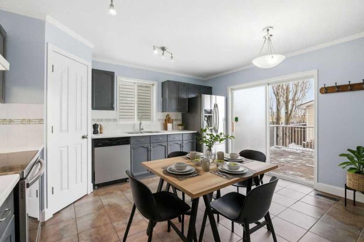 This home truly has it all — Air Conditioning, Walnut Hardwood, 4 Bedrooms, and a Finished 22' x 24' Garage! Hardwood and tile flooring span the main and upper levels, creating a warm and inviting feel throughout. The main floor offers a spacious living room with a charming bay window and rich walnut hardwood, along with new carpet leading to the upper level. --- The bright, open kitchen features shaker-style oak cabinets, stainless steel appliances, and a large pantry. A conveniently located half bath completes the main level. Patio doors off the kitchen fill the space with natural light and lead out to a 17.8' x 14' deck. ----Upstairs, the primary bedroom—with another bay window—includes a generous walk-in closet and a “cheater” ensuite entry to the beautifully renovated bath. Two additional bedrooms with hardwood flooring complete this level. --- The lower level features a fully developed basement with a den/bedroom, a comfortable rec room, and a combined laundry/furnace room with storage under the stairs. This level includes new carpet on the stairwell and durable vinyl flooring throughout. The area at the back of the den was originally intended for a bathroom and a closet/storage room. The new Buyer could complete. ---This home offers a New ROOF SHINGLES in 2019, NEW NEST THERMOSTAT, NEW FURNACE, AND NEW HOT WATER ON DEMAND installed by Reliance Home Comfort in Nov/2023, security cameras, and door access through Telus is an option, equipment is there. The backyard is designed for both relaxation and functionality, with a large deck, fenced-in dog run, garden planters, and a storage shed. There is direct access to the oversized 22' x 24' double garage—a mechanic’s dream—insulated, drywalled, and complete with built-in shelving, loft storage, and convenient back-lane access. **** This home is move-in ready and available with immediate possession. Call to view TODAY!
