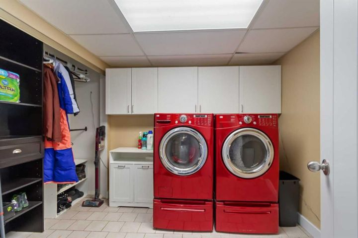 Fridge, cook top, built-in oven, dishwasher, washer, dryer, Levolor window blinds, central vac, shed, central a/c, garage heater, alarm system