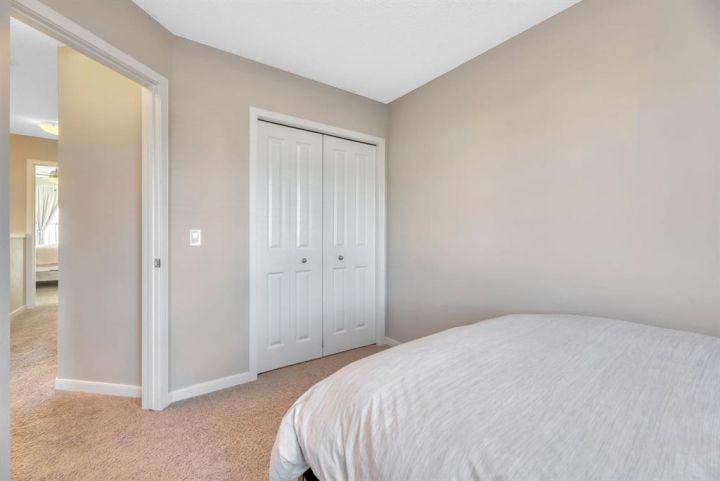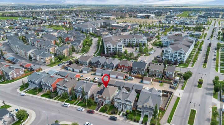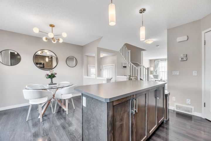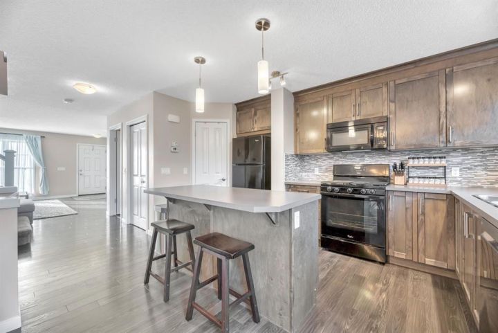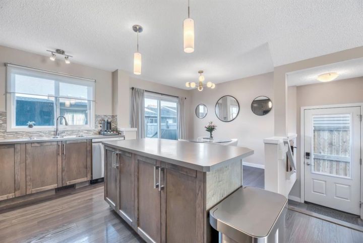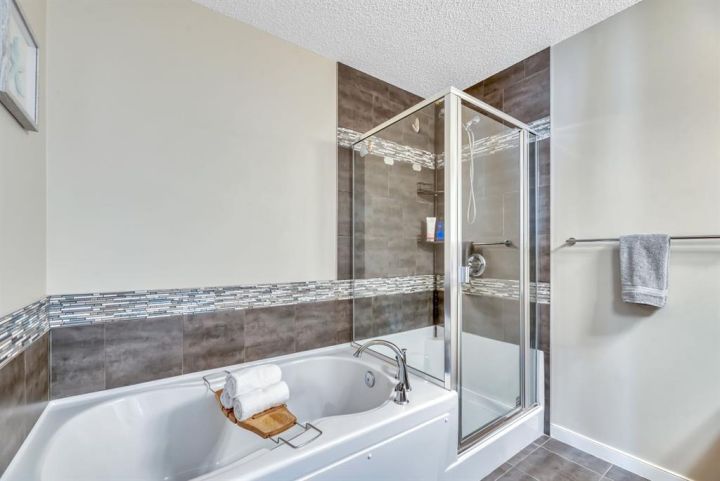 Welcome to this bright and beautifully maintained 1,411 sq. ft. semi-detached home in the highly sought-after lake community of Auburn Bay! Offering a fully finished basement, an oversized double-detached garage, and exceptional walkability, this home delivers incredible value in one of Calgary’s favourite four-season lake communities. The main floor is warm and inviting, featuring a cozy gas fireplace, large windows, and patio doors that flood the space with natural light. The kitchen offers rich wood cabinetry, great counter space, and a functional layout perfect for everyday living and entertaining. A convenient side exterior door adds extra flexibility and easy access to the backyard. Upstairs, you’ll find two generous bedrooms including a spacious primary retreat complete with a soaker tub, separate glass-enclosed shower, and a large vanity—a true private getaway. The fully finished basement expands your living space with a large recreation room, a comfortable bedroom, and a full bathroom—ideal for guests, teens, or a home office setup. Outside, enjoy a low-maintenance landscaped yard with turf, a great deck for summer BBQs, and your oversized double-detached garage offering ample parking and storage. Located right across from a school and just a short walk to grocery stores, restaurants, and everyday amenities, this home offers unbeatable convenience. Plus, enjoy exclusive access to Auburn Bay Lake with year-round activities including swimming, beaches, skating, fishing, and community events. A perfect blend of comfort, location, and lifestyle—welcome home!