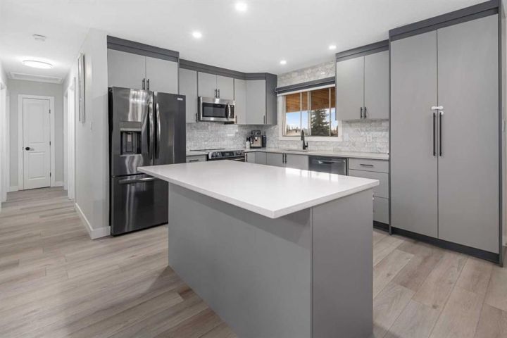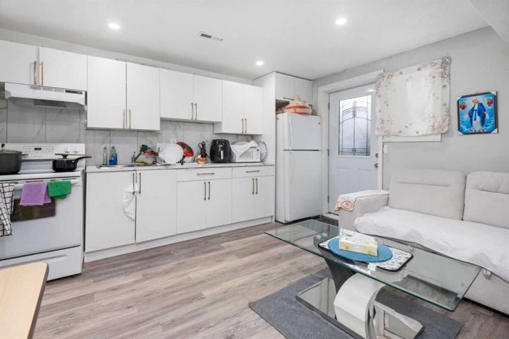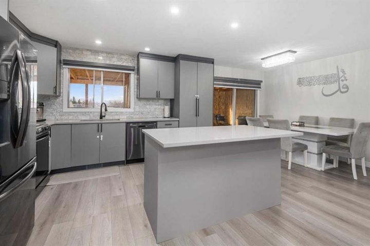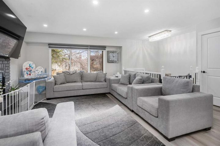 Welcome to a home that has been completely transformed from top to bottom with modern finishes and thoughtful design. This move-in-ready property offers the ideal blend of style, function, and flexibility, perfect for families, multi-generational living, or investors. Inside, you will find wide-plank vinyl flooring, an open-concept layout, sleek pot lighting throughout, fresh paint from top to bottom, and all new doors and casings. The upgraded kitchen features matte cabinetry, granite countertops, a porcelain marble backsplash, and black stainless steel appliances, creating a beautiful and practical space for everyday living and entertaining. The main level includes a cozy living area with a wood-burning fireplace, three comfortable bedrooms, and a fully updated bathroom. The lower level adds exceptional versatility with a spacious primary bedroom and private ensuite, plus an additional 1-bed/1-bath illegal suite with its own kitchen and separate entrance. This setup is ideal for extended family or a nanny suite. Outside, the upgrades continue with new stucco, a new roof, updated concrete and deck, modern fencing, and a new garage door. Come see it in person. This one truly stands out!