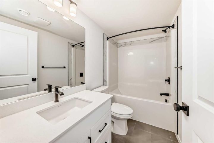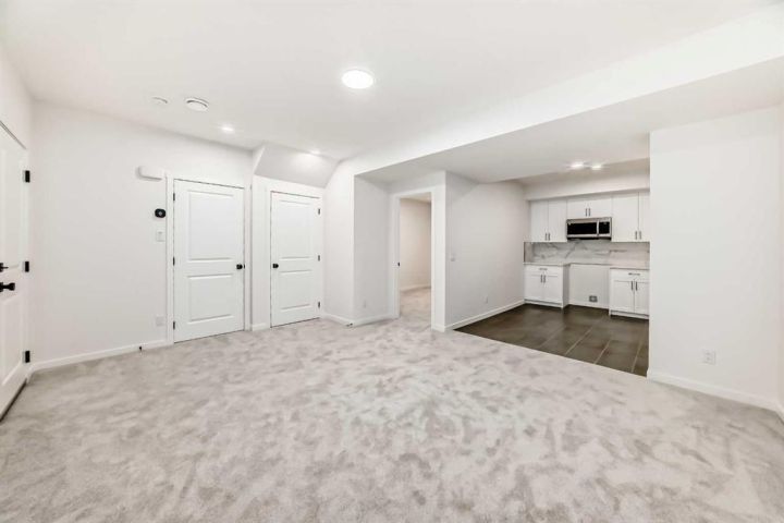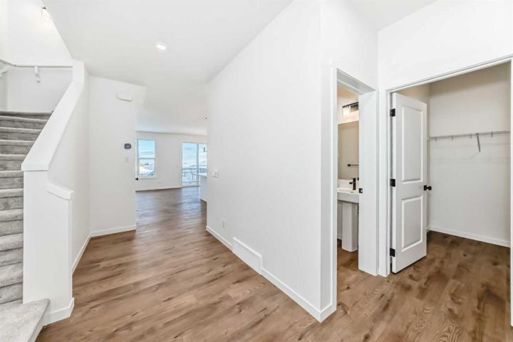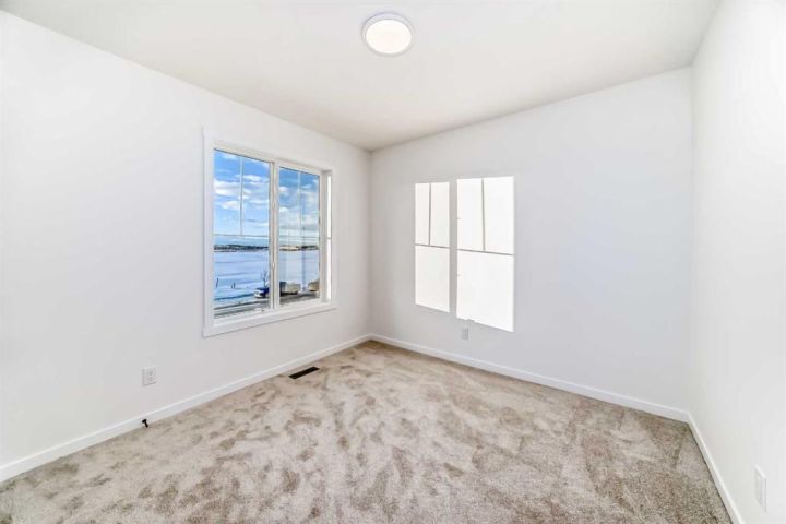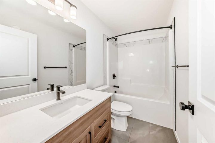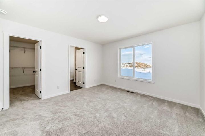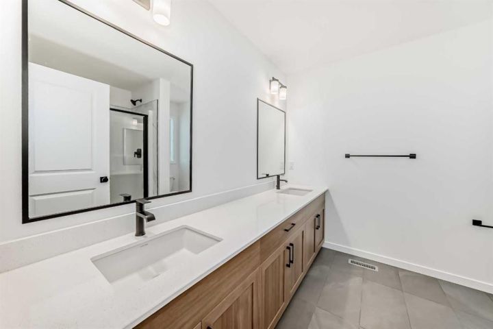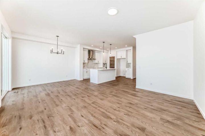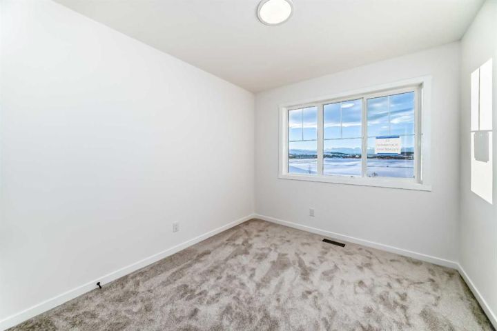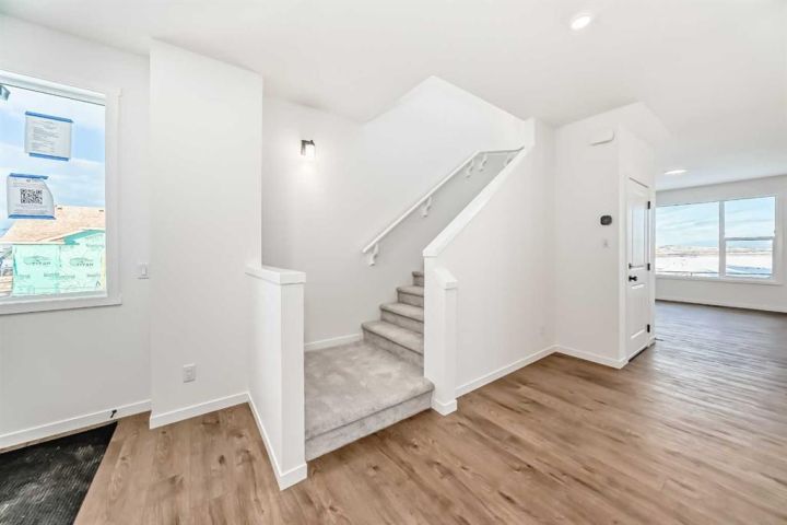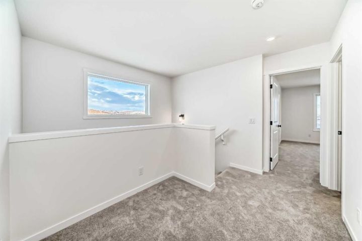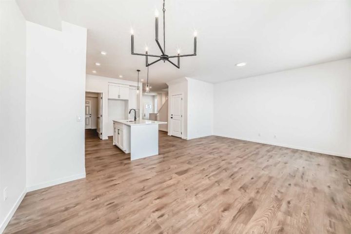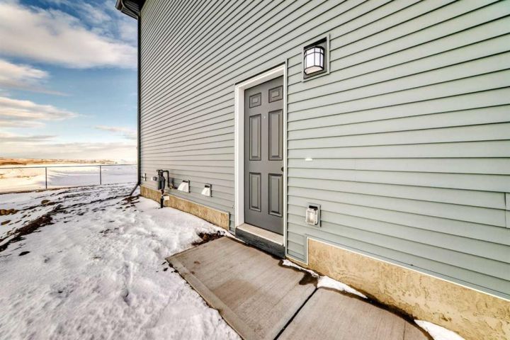 This brand-new half duplex in Cochrane’s Southbow Landing is fully completed and move-in ready, offering a spacious layout that’s built for real life and a built in mortgage helper in the form of a fully developed LEGAL suite ! The main floor delivers an open, bright footprint, a large foyer leads straight into a clean, modern kitchen with a functional island, plenty of prep space, and an easy flow into the dining nook and great room. The living area is anchored by a sleek electric fireplace and framed by oversized windows that pull in natural light all day. Direct access to the rear deck gives you smooth indoor-outdoor living without hassle. Upstairs, the layout is dialed in. A versatile loft sits at the center and works as a second living space, home office, kids zone, or media room. The primary bedroom is generous in size and includes a well-finished ensuite with a walk-in shower and double vanity. Two additional bedrooms and another full bathroom complete the upper floor, giving families or shared living setups exactly what they need. The basement is designed with a separate side entry and is already planned for a one bedroom suite layout, offering massive potential for future income, multi-generational living, or added flexibility. With the 9 foot foundation height, proper bathroom rough-ins, dedicated living room, full kitchen area, and bedroom placement already mapped out, the heavy lifting is done. A double attached garage adds the convenience buyers expect while the exterior shows clean, modern farmhouse lines that give the home strong curb appeal. Because this property is brand new, you get untouched systems, fresh materials, and zero renovation headaches. Southbow Landing is shaping up fast and is one of Cochrane’s most promising new communities. Walkable pathways, planned parks, and future amenities makes this location ideal for anyone wanting both convenience and long-term upside. This home delivers serious value.