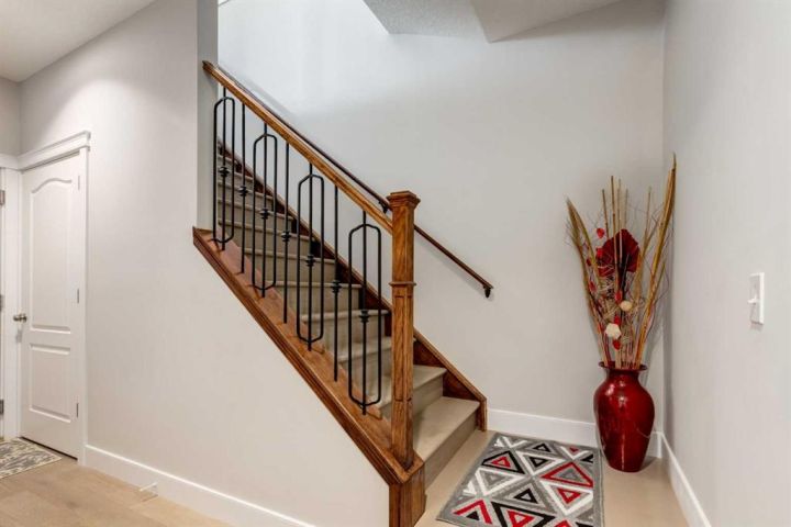 Immaculate Upgraded Home in the Prestigious Community of Cougar Ridge. Welcome to this turn-key, meticulously maintained 2-storey family home nestled in the highly sought-after community of Cougar Ridge. Exuding elegance and comfort, this 3-bedroom, 2.5-bathroom residence is the epitome of modern family living—boasting exceptional upgrades and an unbeatable location just steps from WinSport/C.O.P, scenic trails, parks, and top-rated schools. As you step inside, you’re greeted by a bright and airy open-concept layout, enhanced by soaring 9ft ceilings and stunning white oak engineered hardwood flooring that flows seamlessly throughout the main level. The upgraded knock-down textured ceiling, along with all new baseboards, casing, and carpeting throughout, further elevate the home’s refined aesthetic. Perfect for entertaining, the formal dining room is conveniently located at the front of the home, while the heart of the home lies in the spacious living room featuring a dramatic floor-to-ceiling brick fireplace. The gourmet kitchen is a chef’s dream, complete with stainless steel appliance package, upgraded granite countertops, and a generous nook that leads to your private outdoor oasis. Enjoy summer evenings on the expansive, upgraded deck—ideal for relaxing or hosting guests. Thoughtfully designed, the main floor also includes a stylish half-bathroom and a functional mudroom with direct access to the front-attached garage. Upstairs, a cozy bonus room—currently used as a fourth bedroom—adds valuable flexible space for your family’s needs. The luxurious primary retreat offers a spacious walk-in closet and a private ensuite with a walk-in shower. Two additional generously sized bedrooms and a well-appointed 3-piece bathroom complete the upper level. The basement remains undeveloped, providing endless possibilities for customization to suit your lifestyle. With recent roof shingles replaced and an array of thoughtful upgrades throughout, this exceptional home is move-in ready.