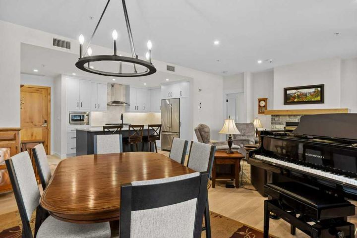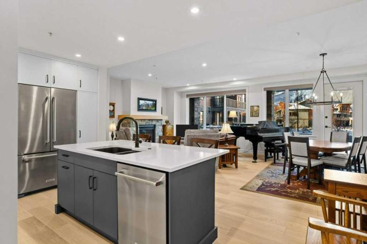 Well appointed and spacious, this lovely 2-bedroom + den/office apartment style condominium in Arnica Lodge is located steps from Spring Creek's central Plaza with shops and restaurants. Owners will enjoy lounging outside on the large private west facing patio with a gate to the courtyard and walking paths. This property is bathed in natural light and features great views to the Rundle Range, open concept living space with a gourmet kitchen, hardwood flooring, quartz counters throughout, stainless steel appliances, and a titled tandem parking stall. After hitting the trails or a day skiing owners will enjoy the roof top hot tub with views of the Three Sisters.
