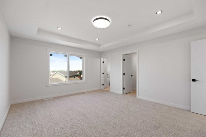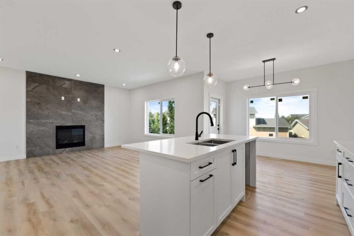 Brand New Walkout Home with Triple Car Garage in Carstairs, Alberta. Welcome to this stunning brand new home perfectly situated on a quiet cul-de-sac in Carstairs. Nestled on a pie-shaped walkout lot, this property offers exceptional curb appeal, functional design, and high-end finishes throughout. Step inside to find an inviting main floor with soaring ceilings and luxury vinyl plank flooring that flows seamlessly throughout. The thoughtfully designed floor plan also includes a bright home office, offering the perfect space for work or study. The heart of the home is the gorgeous kitchen featuring shaker-style cabinetry, quartz countertops, a spacious pantry, and modern finishes any home chef will appreciate. The adjoining dining area and cozy living room—complete with a gas fireplace—make this the perfect space for family gatherings and entertaining. Upstairs, the primary suite offers the ideal retreat with a large bedroom, walk-in closet with built-ins, and a spa-inspired ensuite featuring a soaking tub, glass shower, and dual vanities. The upper level is completed by two additional bedrooms, a bonus room, and a beautiful 4-piece bathroom. The unfinished walkout basement provides a fantastic layout and endless possibilities, complete with a separate entrance—ideal for future development or multi-generational living. With a triple car garage, premium finishes, and a prime location, this home is the perfect blend of luxury, comfort, and value. A must-see for anyone seeking a brand new home in Carstairs!