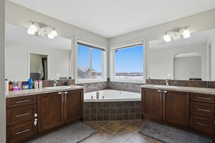 ** LEGAL 2 Bedroom Basement Suite ** Directly Across from Apostles of Jesus School | Stunning Family Home | Totaling 6 Bedrooms & 3.5 Bathrooms | 2,256SqFt | Open Floor Plan | High Ceilings | Incredible Natural Light | Spacious Kitchen | Stainless Steel Appliances | Kitchen Island with Barstool Seating | Corner Pantry | Main Level Den | Great Living Space | Upper Level Family Room | Plush Carpet in Upper Bedrooms | 4 Bedrooms Upstairs | Walk-in Laundry Room | Separate Entry to Legal Basement Suite | Recessed Lighting | Open Floor Plan Living Space | Full Height Cabinets | Stainless Steel Appliances | 2 Great Sized Bedrooms | Stacked Laundry | Deck | Fully Fenced Backyard | Front Double Attached Garage & Driveway | Great Location | Family Friendly Neighborhood | Shopping Steps From Your Front Door. Welcome Home! 14 Skyview Ranch Street NE is an incredible family home with the location surrounded by schools, shopping, parks, playgrounds and more! Open the front door to a spacious foyer that welcomes you inside. The main level has high ceilings and an airy open floor plan with great living space. The open den is perfect for day seating. Move further into the home to find the kitchen, dining and living rooms. The kitchen is outfitted with stainless steel appliances, granite countertops, ample cabinetry, a corner pantry for dry goods and a centre island with barstool seating. The open concept living makes hosting easy; the kitchen, dining and living rooms welcome your guests. The dining & living rooms are framed with large windows that overlook the deck and backyard. The door off the dining room leads to the deck where you can enjoy BBQs! The main level has great storage and a 2pc bath. Upstairs has plush carpet flooring in the family room and 4 spacious bedrooms. The primary bedroom is paired with a private 5pc ensuite bath and a walk-in closet. The ensuite has a double vanity, a corner soaking tub, walk-in shower and private washing closet. Bedrooms 2, 3 & 4 upstairs are all a great size and share the main 4pc bath with a tub/shower combo. The conveniently placed laundry room is upstairs near all the bedrooms for easy access. Downstairs is a legal 2 bedroom basement suite with its own entry and laundry making it a completely independent level of the home. The basement also has an open floor plan kitchen and living area making both living and dining flexible in this space. The kitchen has full height cabinets and stainless steel appliances. The 2 bedrooms are on either side of the basement increasing the privacy. The basement 3pc bathroom has a walk-in shower and single vanity with storage below. Outside, the fully fenced backyard provides you with a serene and private space to enjoy in the summer months. The front attached garage and driveway allots you with ample parking! The home's location is perfect; directly across from your front door is the Apostles of Jesus School & Playground. At the end of your street is Prairie Sky School | Calgary Board of Education too!