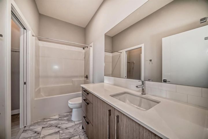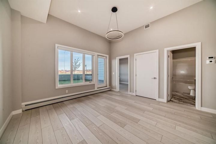 TRUMAN-built 1-Bedroom + Den, 1-Bathroom home in Skyview North offers a bright, airy layout with a titled parking stall. Step inside to experience elevated living with premium finishes throughout, including LVP flooring, a designer lighting package, and oversized windows that fill the space with natural light. The kitchen showcases sleek stainless steel appliances, soft-close cabinetry, and elegant quartz countertops—perfect for both everyday meals and entertaining. The Bedroom features a walk-through closet leading to a stylish four-piece bathroom, while the den offers versatile space for a home office, reading nook, or guest space. Additional highlights include in-suite laundry, contemporary window coverings, and a private balcony off the living room—an ideal spot to enjoy your morning coffee or unwind in the evening Located in Skyview North, just steps from Sky Point Landing’s shopping and dining, scenic parks, and playgrounds, this home combines style and convenience. Plus, with quick access to Stoney and Deerfoot Trail, commuting is effortless With TRUMAN’s commitment to quality and their promise to help you Live Better, this home is the perfect choice for modern living. *Photo gallery of similar unit