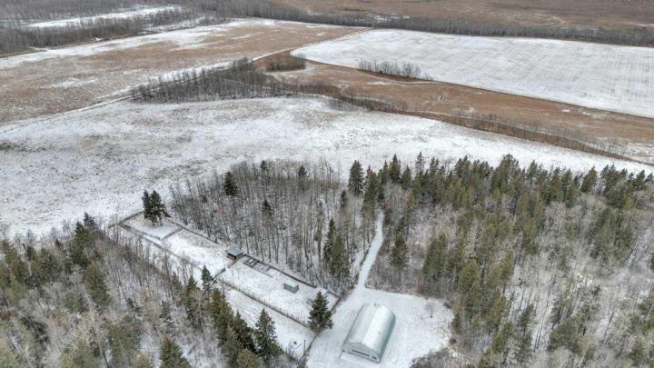 Discover the ideal combination of privacy, generous space, and everyday convenience with this beautifully maintained 35-acre property, located just minutes from town. Lovingly cared for over the years, this acreage radiates pride of ownership both inside and out. From the moment you arrive, this 1377 sq. ft bungalow’s boasts inviting curb appeal and an oversized garage that sets a warm, welcoming tone. Step inside to a bright kitchen featuring a center island; the perfect hub for family meals and entertaining. Adjacent to the entry, a thoughtfully designed laundry room adds effortless convenience to daily routines. The open dining area easily accommodates a full-sized dining suite, while the spacious living room is bathed in natural light from two large bay windows. A cozy corner wood-burning stove with a classic brick surround creates the perfect gathering spot for relaxation and connection. Down the hall, a versatile bonus room that is currently used as a quiet reading nook—could seamlessly become a home office, hobby room, or additional bedroom. A full 4-piece bathroom and a comfortable primary bedroom round out the main floor. The fully finished lower level expands your living space with an additional bedroom, two generous recreation rooms, a convenient 3-piece bathroom, and a dedicated furnace/utility room. Extensively renovated in 1991, the home blends timeless charm with lasting quality and modern functionality. The basement has a new weeping tile system and super sump pump professionally installed. The basement is dry! Outside, a large wraparound deck overlooks the private, park-like yard, framed by mature trees that offer both beauty and natural wind protection. The property is fully perimeter-fenced and cross-fenced—perfect for livestock or horses. Supporting features include a spacious 40 x 60 insulated quonset for equipment/storage, with a 18 x 12 overhead door. All shelving and workbenches stay withthe building. There are also well-maintained corrals, a chicken coop, garden shed, and a reliable stock waterer. Whether you’re seeking a serene rural retreat or the ultimate acreage to embrace country living, this exceptional property truly has it all!