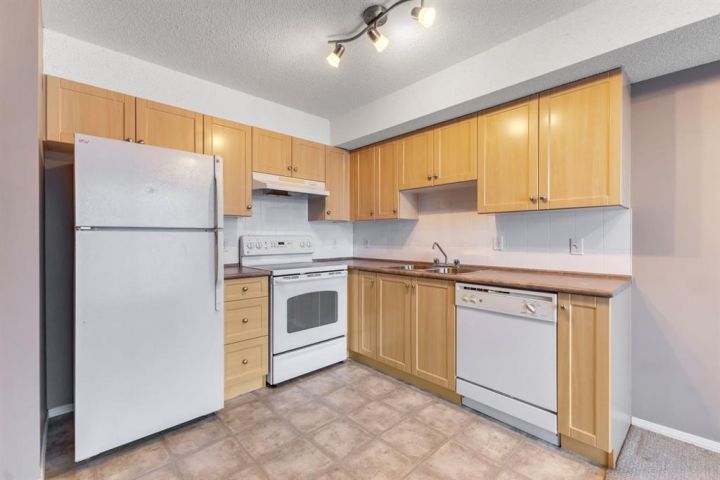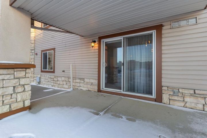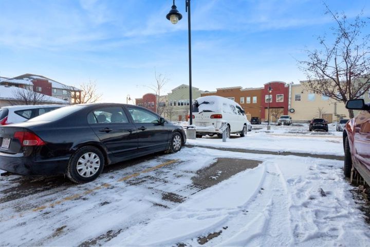 Welcome to this inviting one-bedroom plus den condo in the heart of downtown Cochrane! A ground-level unit with only one shared wall! A rare find! Step inside and you will notice the warm afternoon sun from west facing windows, making your open concept living room & kitchen space feel bright and cozy. Enjoy the convenience of in-suite laundry, and plenty of space for a home office, guest area, or bonus living space in the den. Step outside and you are just minutes from shops, restaurants, grocery stores, parks & schools etc; making this one of the most walkable locations in town! Your outdoor assigned parking stall is close to the main entrance & the units sliding door, added convenience! And low condo fees! Whether you're a first-time buyer, downsizing, or looking for an investment property, this well-situated condo gives comfort, convenience, and exceptional everyday living!