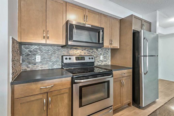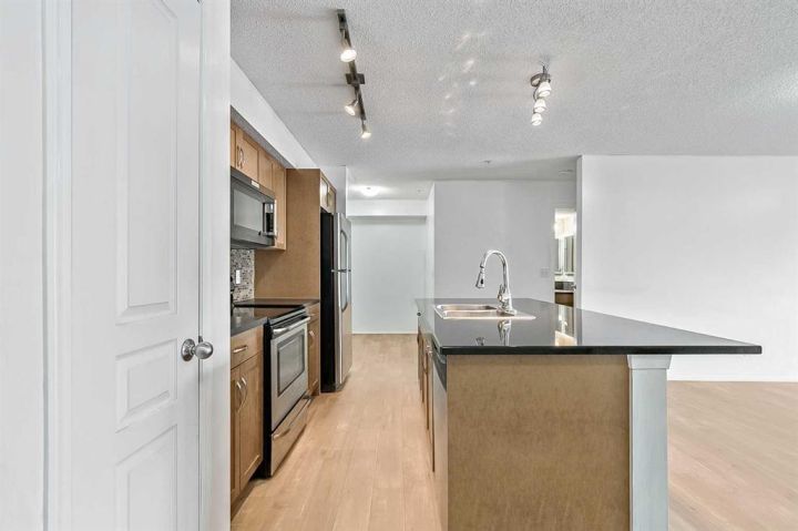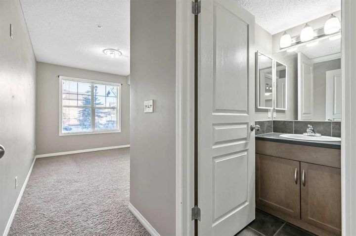 Priced to sell and move-in ready! This is one FABULOUS appointed 2 BED + DEN, 2 FULL BATH unit in a prime New Brighton location! Offering over 894 sq. ft. of bright, open-concept living, this impeccably maintained condo features a smart split-bedroom layout—perfect for roommates, guests, or anyone wanting extra privacy. The beautiful kitchen includes stainless steel appliances, cabinetry, a pantry, and a large island with granite counters and breakfast bar seating. The spacious living/dining area easily accommodates full-sized furniture and provides direct access to a private covered patio. Both bedrooms are generously sized with built-in closets and quick access to their own 4-pc bathrooms. A semi-private den offers an ideal work-from-home space. Additional highlights include in-suite laundry, in-unit storage, heated underground parking, and a separate storage locker. This well-managed building features landscaped grounds, visitor parking, and very reasonable condo fees. Located steps from countless amenities—grocery, dining, coffee shops, fitness, professional services, and the South Health Campus. Move-in ready and perfectly located—don’t miss this exceptional unit!