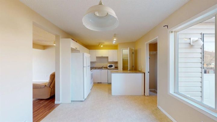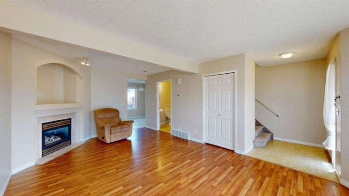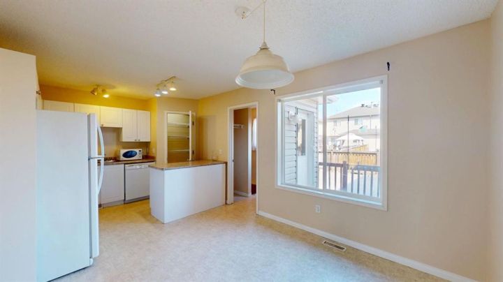 Welcome to 117 Kodiak Crescent, located in the subdivision of Bear Ridge! This half duplex is fully developed and would be an economical choice for anyone looking to get into the home buying market. With low condo fees and easy upkeep, this unit will please even the most discerning of buyers. Upon entering the main level from the double parking pad in front of the home, you are greeted with an inviting living space adorned with a gas fireplace that flows into the eat in kitchen, fully equipped with an island and corner pantry. Off the kitchen is a full sized deck that leads to the fully enclosed back yard, perfect for your four legged friends! The main level also offers a two piece powder room that conveniently doubles as the main floor laundry. Heading to the basement, there is one bedroom, a three piece bath with a stand-up shower, and another living room, complete with a fridge and sink, providing endless opportunities for entertaining friends. If it's privacy you're looking for, the separate entrance to the basement can be engaged by simply locking the door to the kitchen. Perfect if you have family on an extended stay! On the top level, are three generously sized bedrooms including the primary that has its own walk-in closet. The four piece bath and linen closet complete this floor. Within a one minute walk to the bus stop, great schools within walking distance, and the Birchwood Trails just across the main throughway, this is one property you don't want passing you by. The price is on pointe, and the low, low condo fees make it an easy choice.