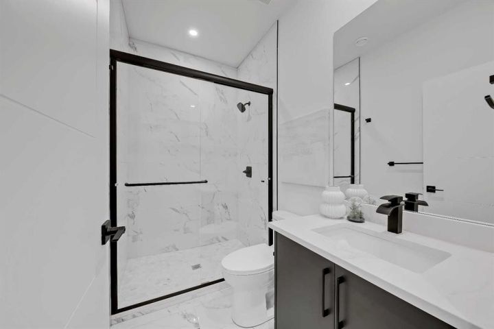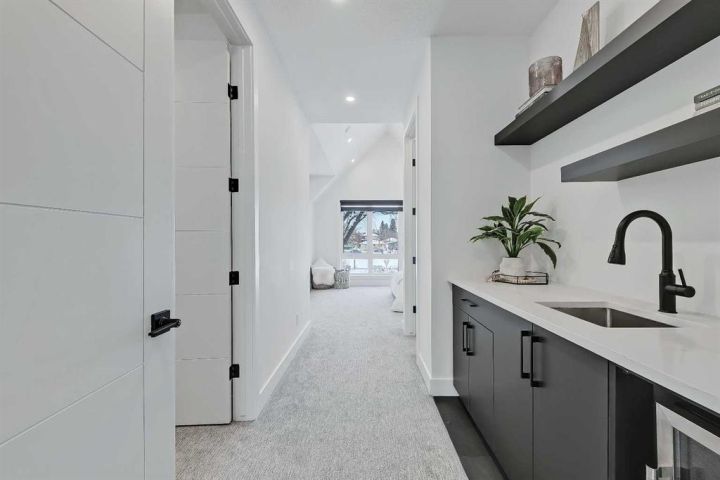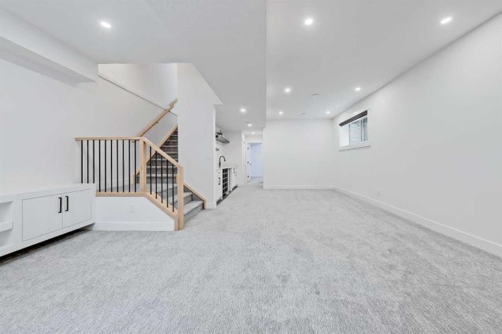 Discover a beautifully designed, custom SEMI-DETACHED home in the heart of WINDSOR PARK! Positioned on a quiet, tree-lined street FACING A GREEN SPACE, this home blends architectural vision with warm everyday comfort. The main floor opens with a refined dining room wrapped in natural light, complete with feature-wall detailing that sets a welcoming, upscale tone. Just beyond, the chef’s kitchen steals the spotlight with a large quartz island, custom cabinetry, and upgraded appliances that make day-to-day cooking feel easy and entertaining feel effortless. A smooth flow leads into the spacious living room, where a full-height tiled gas fireplace adds texture and warmth, balanced by oversized windows framing the south-facing backyard. At the rear, a well-planned mudroom keeps life organized with built-ins for coats, bags, and sports gear, and the powder room offers a stylish touch for guests with modern finishes and a clean, elegant aesthetic. Upstairs, the primary suite feels like a true retreat, starting with vaulted ceilings and a dedicated coffee bar that adds a boutique-hotel feel to your mornings. Two walk-in closets offer exceptional storage, while the spa-inspired ensuite features a freestanding soaker tub, double vanities, and a glass-enclosed shower finished in soft stone tones that echo throughout the upper level. Down the hall, two additional bedrooms share a beautifully designed Jack-and-Jill bathroom with a dual vanity and contemporary fixtures, giving everyone the space they need. A separate laundry room completes the upper level with added convenience. The lower level adds another dimension to the home. The expansive recreation room features a built-in media centre and open shelving, making it the perfect zone for movie nights, gaming, or relaxed gatherings. A sleek wet bar with a beverage fridge and sink elevates the space for entertaining, and an additional bedroom with a full bathroom provides comfort and privacy for guests. Ample storage keeps clutter tucked away, preserving a clean, open feel throughout. Outside, the south-facing backyard offers a sunny retreat for summer evenings, weekend barbecues, or quiet morning coffee on the deck. The double detached garage with rear-lane access keeps vehicles protected and provides easy in-and-out access year-round. Windsor Park continues to be one of Calgary’s most desirable inner-city neighbourhoods for its accessibility and charm. From this address, you’re minutes from Chinook Centre, the boutiques and dining of Britannia Plaza, and local favourites like Monogram Coffee, Village Ice Cream, and Sunterra Market. Green spaces such as Sandy Beach and the Elbow River pathways are close by, along with excellent schools, including Elboya School, Western Canada High School, and St. Augustine. Commuting is effortless with quick access to Macleod Trail, Glenmore Trail, and Elbow Drive for whole city access.