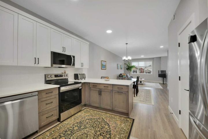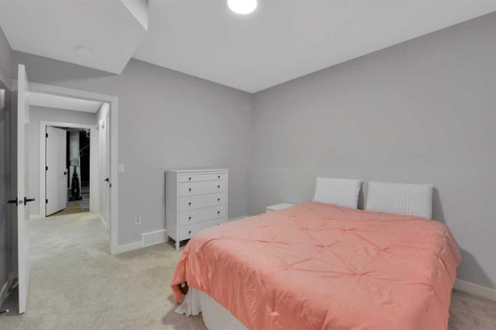 Built in 2024 this home is a shinning example of the modern home. 4 bedrooms, 3 bathrooms and a bright, well planned layout in one of Sylvan Lake’s established neighbourhoods with convenient access to schools, shopping and the highway. Both levels feature 9 ft ceilings that create an open atmosphere and enhance the natural light throughout. The upgraded kitchen includes pot lighting, soft close cabinetry, quartz countertops, vinyl plank flooring, this Kitchen has plenty of room to work in, you will love the space and the feeling this home provides. The primary bedroom is complete with an ensuite and his and her closets, for efficient storage. A 12 x 10 covered deck extends off the kitchen and faces south, providing a comfortable outdoor space with a gas line for summer grilling. The fully finished lower level features large windows, carpeted flooring and a spacious family room that offers flexibility for both relaxation and entertainment. The basement also includes two sizeable bedrooms, a generous bathroom and a large utility and laundry room with a water softener and ample storage options. If you want space this house has it. Outside, the front yard is landscaped and the backyard is fully fenced with a firepit. A 22 x 22 garage sits off the back alley, offering secure parking and additional storage.