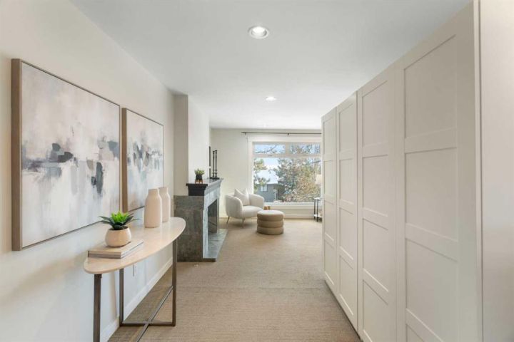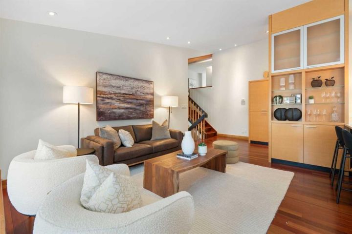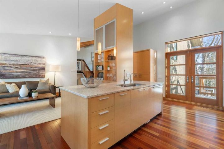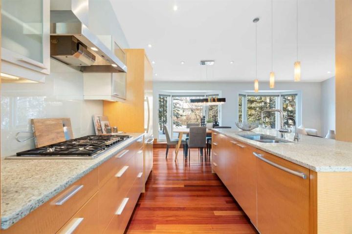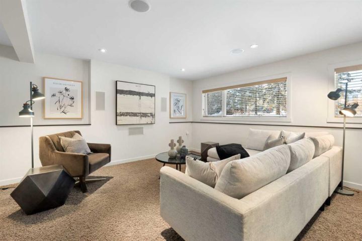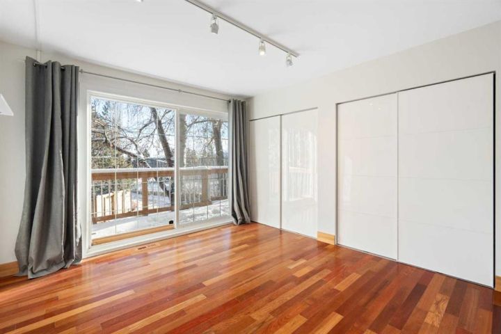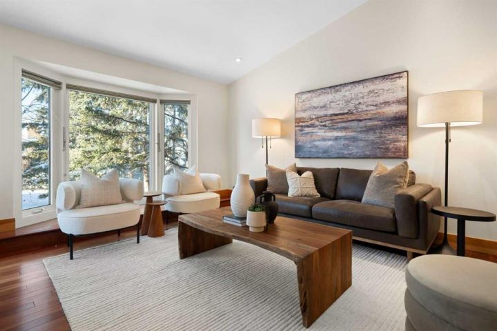 Welcome to a rare find — a home that offers beautiful views of sunrises and downtown yet feels tucked away in nature conveniently situated in the popular neighbourhood of Coach Hill. Surrounded by mature trees , and framed by open sightlines from every window, this one-of-a-kind property blends modern design, and warmth in a 5-level split layout that feels both expansive and effortlessly livable. Every detail has been thoughtfully selected: Brazilian hardwood floors, recycled-glass countertops, vaulted ceilings, exposed beams, and premium Miele appliances bring craftsmanship and character to the forefront. The top-level primary suite is your private retreat. With a wood-burning fireplace, a cozy sitting area, a workspace that opens to the floor below, a spa-like ensuite with a jetted tub, and a beautifully designed custom closet, this wonderful space invites you to unwind and recharge. Entertaining flows naturally in the open concept living, dining, and kitchen level. French doors lead out to an impressive two-tier cedar deck (over 300 sq. ft.) complete with a gas line—perfect for grilling, hosting friends, or enjoying quiet summer evenings under the canopy of trees. A matching cedar fence creates a private, enclosed yard. The main level offers two bright, welcoming bedrooms—one with direct access to a deck—and a 4-piece bath. Just below grade, a spacious theatre/playroom with large windows creates the perfect space for movie nights, game days, or a vibrant kids’ zone. The lower mudroom adds functionality and comfort with heated floors and direct access to the attached rear-drive garage. This home is freshly painted with a new hot water tank and air conditioning. Set beside a quiet, peaceful green space, this home offers a combination of design, warmth, privacy, and convenience doesn’t come along often—don’t miss the opportunity.