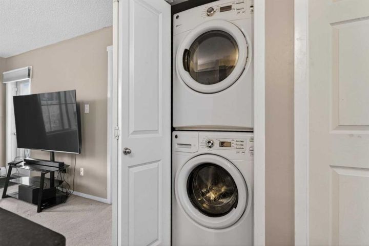 Experience easy, comfortable living in this modern two bedroom condo in Crystallina Nera. With a functional layout, practical features, and a bright, sunny living space, it has everything you need whether you are buying your first home or keeping it as a steady rental. It has been rented since purchase and has been a reliable investment for the current owner. Inside, you have two good sized bedrooms, one full bath, and an open living and kitchen area. The suite includes an in suite washer and dryer and a large northwest facing balcony that brings in great natural light, especially in the summer. You are minutes from Anthony Henday, close to transit stops, and only a short drive to Manning Town Centre, grocery stores, takeout spots, parks, and schools, making day to day life simple for owners or future tenants. It is a well kept two bedroom home that delivers exactly what you need. A solid choice for anyone looking for value in a growing community. Comes with one titled underground stall.