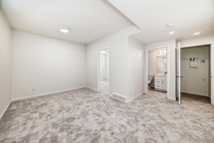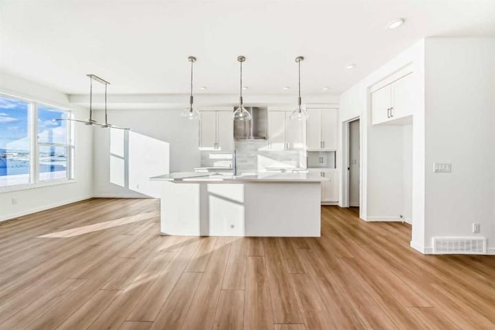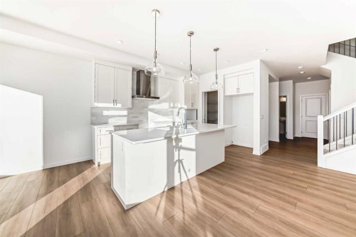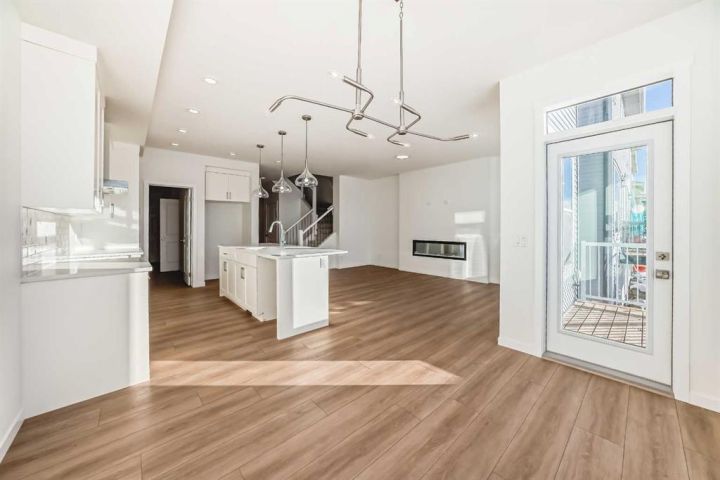 This exceptional half duplex in Cochrane's rapidly developing Southbow Landing community is a strategic investment, uniquely designed for both premium family living and significant financial advantage, while adhering strictly to a modern, concise, and clear standard. The main floor opens with a welcoming foyer, leading into a bright, open-concept layout defined by durable, contemporary finishes. The core of the home is the functional kitchen, typically featuring an island and ample prep space, which flows naturally into the casual nook and the spacious Great Room, creating an ideal area for daily life and entertaining. Efficiency is maximized by the crucial walk-through pantry connecting the kitchen to the convenient mudroom. Moving upstairs, the floor plan is dedicated to rest and privacy, highlighted by the Primary Bedroom retreat, which boasts a generous 5-piece ensuite bathroom ( with dual sinks) and a walk-in closet. The upper level is completed by two additional well-proportioned bedrooms—one of which includes its own walk-in closet—and a 4-piece secondary bathroom. The true distinguishing feature of this property, however, lies in the lower level: a fully finished and professionally legal secondary suite. This self-contained, income-generating unit is positioned as a powerful mortgage helper or an excellent option for multi-generational living, featuring its own additional spacious bedroom, a full bathroom, a complete second kitchen, and a private family room, offering independence and a strong return on investment within a highly desirable community close to pathways, parks, and all of Cochrane's amenities.