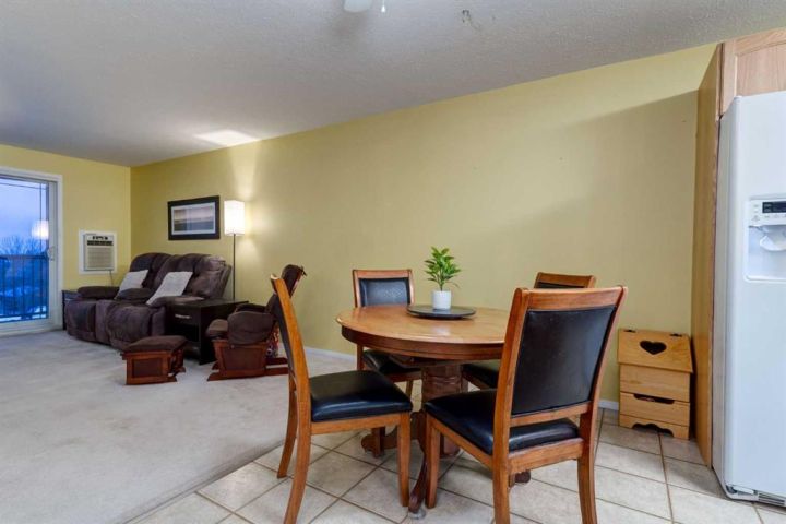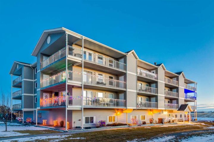 WELCOME to this CHARMING - MOVE IN READY - ADULT-ONLY Condo, offering 993 Sq Ft of Developed Space, w/2 SPACIOUS BEDROOMS, 2 FULL BATHS, IN-UNIT STORAGE, + 2 PARKING STALLS! This meticulously maintained TOP FLOOR residence provides COMFORTABLE, SECURE + LOW-MAINTENANCE Living in one of Nanton’s most established ADULT-ONLY communities. Designed for those seeking CONVENIENCE + QUALITY, this INVITING home features an OPEN CONCEPT layout w/a BRIGHT EAST FACING BALCONY that fills the space w/Beautiful Morning Light. Stepping into the “Heart of the Home” is the seamless KITCHEN, DINING ROOM,+ LIVING ROOM combination, creating an IDEAL setting for hosting family + friends. The Kitchen features AMPLE OAK CABINETRY, CLEAN WHITE APPLIANCES, a GARBURATOR, + a Central ISLAND w/a BREAKFAST BAR perfect for casual meals. The Dining Room provides a WARM + COMFORTABLE setting for evening dinners. The Living Room offers a WELCOMING space to UNWIND at the end of the day, while the in-unit AIR-CONDITIONING keeps the home CONSISTENTLY COMFORTABLE Year-Round. The BALCONY has EXTRA STORAGE, adding convenience, while providing a SERENE OUTDOOR AREA overlooking the east side of the property. An EXCELLENT spot for BBQs or UNWINDING while enjoying the evening sky. Down the hallway sits the 2nd BEDROOM, brightened by NATURAL Light from the Window. Across is a WELL-APPOINTED 4PC BATH, complete w/a relaxing SOAKER TUB. The PRIMARY BEDROOM is a peaceful retreat w/its own EN-SUITE, featuring a 4 FT SIT-DOWN SHOWER for added EASE + COMFORT. Daily living is enhanced by a LARGE IN-UNIT LAUNDRY ROOM w/full hookups, + PLENTY of STORAGE. Parking is exceptional, w/2 PARKING STALLS (1 in the HEATED UNDERGROUND PARKADE + 1 EXTERIOR Stall). The building also has a WATER SOFTENER + offers 2 SOCIAL ROOMS, a WORKSHOP, an ELEVATOR, + AMPLE VISITOR PARKING, ensuring COMFORT and ACCESSIBILITY for residents and guests. Residents can book the large social room at NO COST for private GATHERINGS, DINNERS, or MEETINGS. Seats 30 people + is used for SOCIAL DINNERS, a yearly Stampede breakfast, + a WEEKLY FRIDAY HAPPY HOUR (BYOB). LOW CONDO FEES further enhance the value, covering natural gas, water, sewer, garbage removal, as well as landscaping, + snow removal for a truly HASSLE-FREE LIFESTYLE. Nanton offers the perfect blend of SMALL-TOWN CHARM + PRACTICAL AMENITIES. It's historic main street is home to LOCAL SHOPS, Cafés, + Antique Stores, ESSENTIAL SERVICES, GROCERY Stores, + RESTAURANTS are conveniently CLOSE BY. The TOM HORNECKER REC CENTRE, NANTON GOLF CLUB, several parks support an active lifestyle, + CHAIN LAKES PROVINCIAL PARK (23 mins away) provides year-round opportunities for outdoor recreation. Enjoy the BOMBER COMMAND MUSEUM + the GRAIN ELEVATOR DISCOVERY CENTRE; contributing to the town’s RICH character + sense of COMMUNITY. Just 40 Mins south of Calgary on HWY 2, Nanton offers peaceful, well-connected living for those seeking a quieter pace without sacrificing accessibility. Book Your Showing NOW!