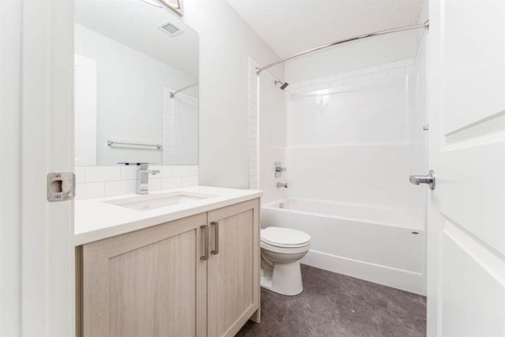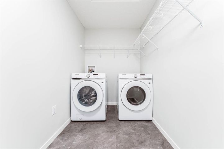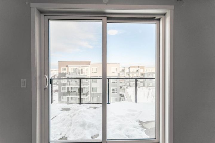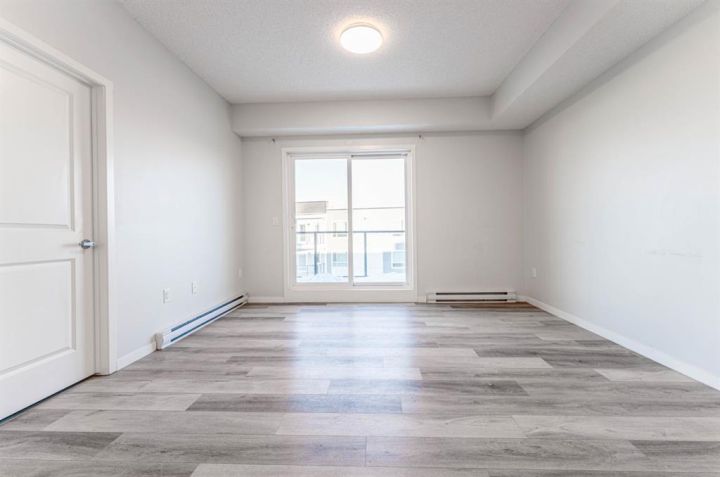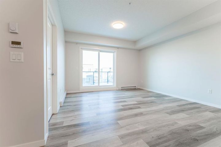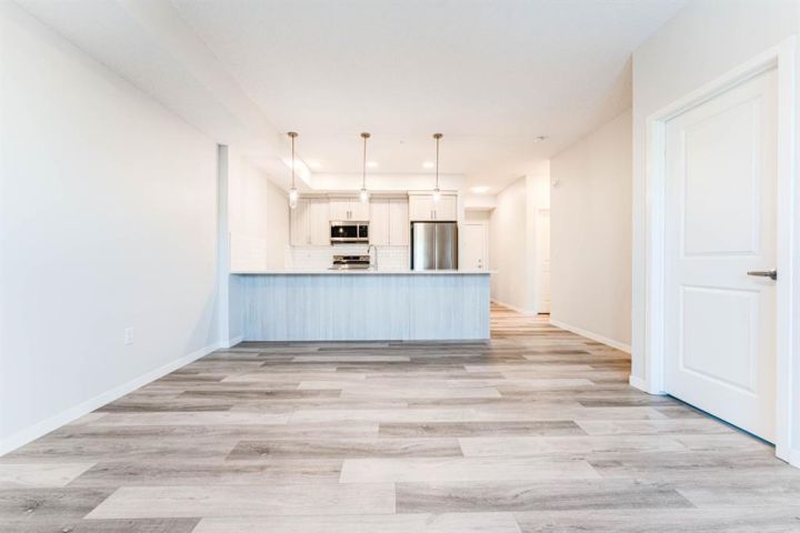 Welcome to this beautifully appointed 2-bedroom, 2-bathroom condo, perfectly located in the vibrant community of Carrington. Designed with a blend of modern style and everyday practicality, this bright, spacious home is ideal for first-time buyers, downsizers, or investors. Step into an open-concept floor plan highlighted by 9-foot ceilings and luxury vinyl plank flooring that flows throughout. Large windows fill the space with natural light, creating a warm and inviting atmosphere perfect for relaxing or hosting friends. The contemporary kitchen stands out with its full-height cabinetry, sleek quartz countertops, stainless steel appliances, and a large island with seating—ideal for casual dining or entertaining. The unit also includes titled underground parking for added convenience. The living area flows effortlessly onto a private balcony, offering a quiet space for your morning coffee or evening downtime. A thoughtful split-bedroom layout provides exceptional privacy—great for roommates, guests, or a dedicated home office. Both bedrooms are generously sized, with the primary suite featuring a walk-through closet and a modern ensuite. A second full bathroom and an oversized laundry/storage room add even more comfort and functionality. Located just steps from beautiful parks, walking paths, and Carrington’s growing mix of shops and amenities, this condo also offers quick access to Stoney Trail and Deerfoot Trail, making travel across Calgary simple and convenient. Stylish, practical, and perfectly situated—this Carrington condo is ready for its next owner. Book your private showing today.