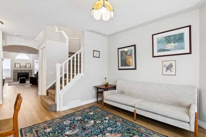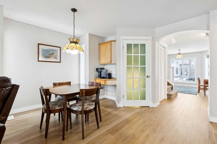 McKenzie Towne, 45 Prestwick Rise SE: Welcome to the sought-after community of McKenzie Towne. This fully developed two-storey sits on a quiet, tree-lined street and features 3 bedrooms, 2.5 bathrooms, central A/C, and an oversized double detached garage. The main floor has vinyl plank flooring throughout and a bright, comfortable layout. The front entry opens to the formal living room and 2 pc powder room at the front of the house. The central kitchen features stainless steel appliances, a corner pantry, a breakfast bar for extra seating, and door access to the back deck. The dining area is spacious and opens to the cozy family room with vaulted ceiling, gas fireplace and west-facing windows that fill the space with natural light. Upstairs, you’ll find a spacious primary bedroom with a walk-in closet, as well as two additional bedrooms, and a 4 pc main bathroom. The fully developed lower level is currently used as a fitness area, but has plenty of room to create a rec space or add a 4th bedroom. There is also a 3 pc bathroom and a laundry room to complete the basement. The west-facing backyard is perfect for summer evenings and features a deck, a generous yard, and an oversized double garage. Updates include the house roof in 2020 and the garage built in 2023. McKenzie Towne offers schools, parks, playgrounds, the shops on High Street, and beautiful Inverness Pond. This home is close to all the amenities along 130th Avenue and provides easy access to Deerfoot Trail, Stoney Trail, and South Health Campus. Call for more info!