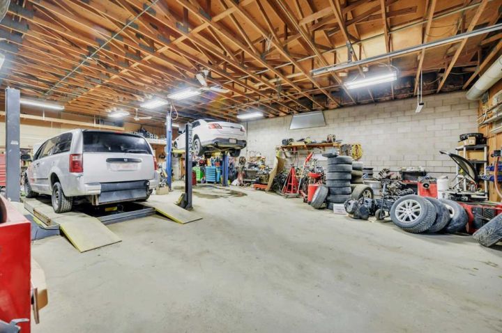 Unique 7,600 sq ft industrial building located in Riverside Industrial Park. This versatile property offers approximately 2,100 sq ft of developed office, meeting and workshop space, plus four separate bays—each with its own overhead door. One bay features two automotive hoists and another has a single hoist, providing excellent functionality for automotive users or service businesses. Bay sizes are: NE: 30' x 49' with 12 x 10 door and 1 hoist, SE: 34 x 50 with 12 x 10 door and 2 hoists, S: 19 x 44 with 9 x 10 door, SW: 19 x 39 with 9 x 10' door. The east side oi the building has 112' ceilings and the west side has 10' ceilings. There are 4 2 pce bathrooms in the building and each bay has access. The office area is heated and cooled by a rooftop HVAC unit, while each bay has its own overhead heater. All four bays are separately metered for power and gas, making them ideal for multiple users or individual tenants. This is an excellent opportunity for small businesses sharing common office amenities while maintaining independent shop space, or for someone looking to create a private toy garage with additional rental income options. Exterior space offers ample parking for vehicles or recreational units.