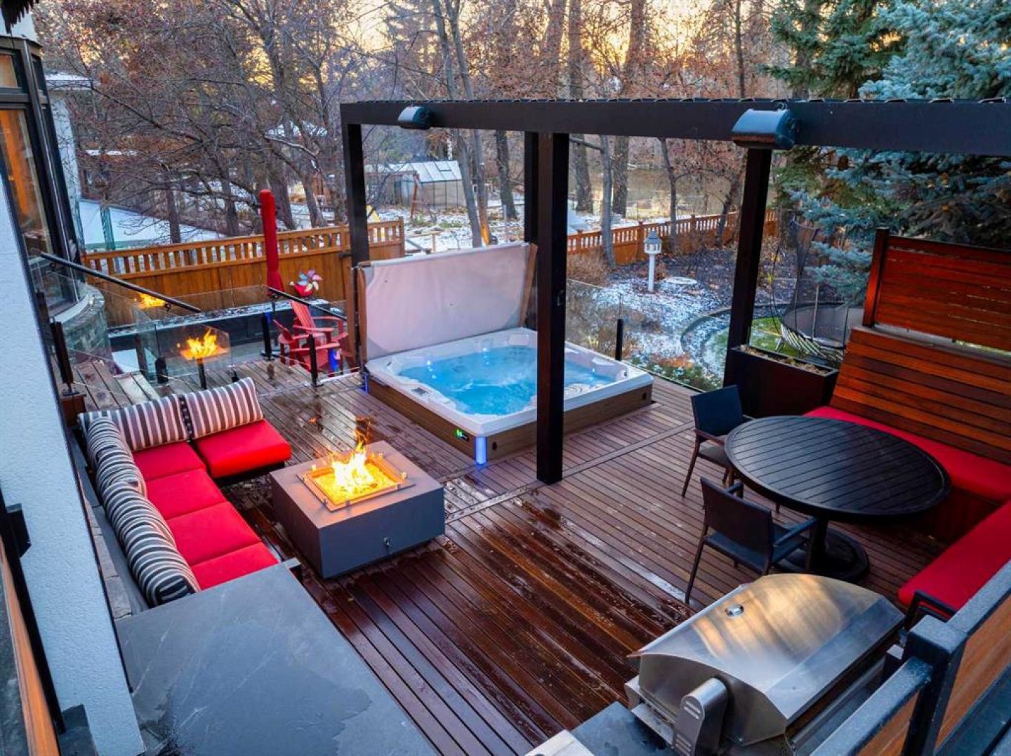 Drapes, Window Coverings - All, Security Alarm & Door Bell Cameras, 2x Exterior Cameras, Pergola, Built in BBQ, Hot Tub, Patio Bar Fridge, Outdoor Stove Burners Built In