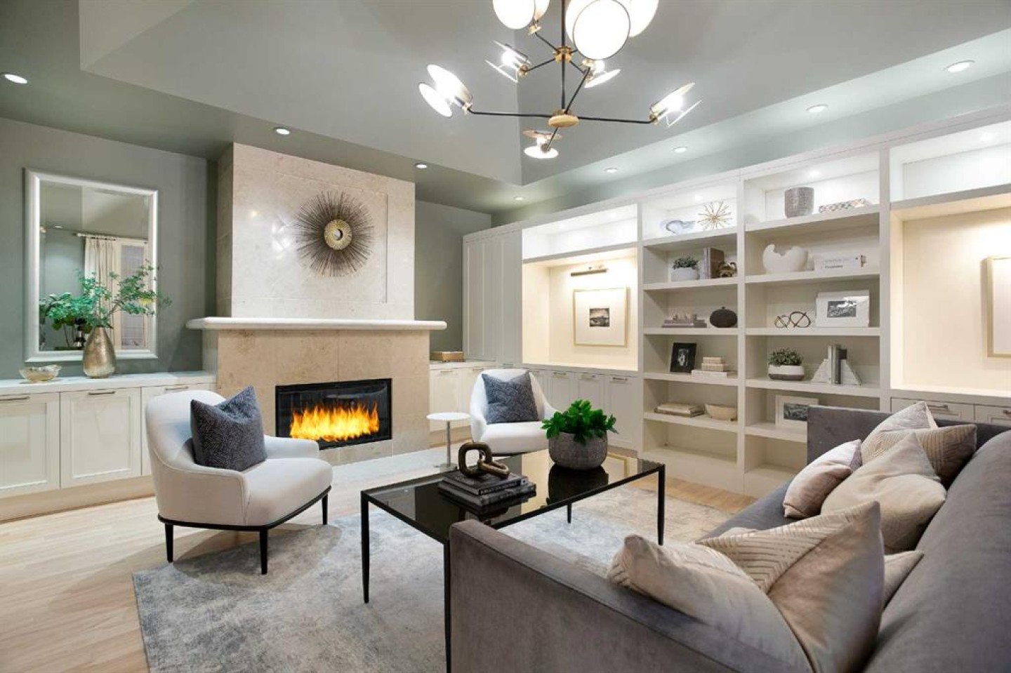 Bookcases, Built-in Features, Chandelier, Closet Organizers, Double Vanity, High Ceilings, Kitchen Island, No Smoking Home, Open Floorplan, Pantry, Quartz Counters, See Remarks, Separate Entrance, Skylight(s), Sump Pump(s), Walk-In Closet(s), Wired for Sound