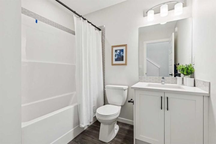 Welcome to this stylish two-storey townhome with a rooftop patio in Calgary’s sought-after lake community. The open-concept main floor seamlessly connects the kitchen, dining, and living areas. The modern kitchen features upgraded stainless steel appliances, an island with quartz countertops, and ample storage. Upstairs, enjoy two spacious bedrooms, each with its own ensuite and generous closet space, plus upper-floor laundry. The master bedroom includes an upgraded walk-in shower, and additional premium back splash and finishes enhance the home’s modern appeal. This ZEN home is built for efficiency and comfort, with 40% more insulation than code, triple-pane windows, and airtight construction. Energy-efficient features include a high-efficiency heat pump with dual fuel gas and 19 solar panels. The home also offers a fully developed third level and a private rooftop patio, perfect for entertaining or relaxing outdoors.
