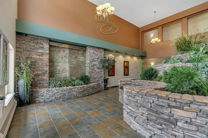 Welcome to your new sanctuary in the heart of Discovery Ridge! It’s hard to believe you’re still in the city when you’re surrounded by the tranquility of Griffith Woods. This beautifully appointed one bedroom, one bathroom condo in the sought after Wedgewoods offers the perfect blend of comfort, style, and convenience. Inside, you’ll find an open concept living space filled with natural light, 9 ft ceilings, featuring warm tones and tasteful finishes throughout with hardwood floors and a soothing gas fireplace. The kitchen is both stylish and functional, with sleek stainless steel appliances, ample counter space, and a breakfast bar ideal for everyday living or hosting friends. The primary bedroom provides a peaceful retreat with generous Walk-in closet space, while the spacious bathroom showcases contemporary fixtures and a soothing palette. Additional highlights include in suite laundry, great storage, and a titled parking stall. Step out onto your private balcony to enjoy serene sunny NW views perfect for your morning coffee or evening relaxation. Life at the Wedgewoods extends beyond your door with access to a fitness centre and social room on the main floor. The pet friendly building (with board approval) makes it a great fit for animal lovers. Best of all, your condo fees include all utilities even electricity! Set in the desirable community of Discovery Ridge, you’ll love being just steps from the endless pathways of Griffith Woods Park, while still enjoying quick access to major roadways, schools, and amenities. This is more than a condo, it’s a lifestyle. Don’t miss the chance to make this lovely home yours. Schedule a showing today and experience the best of nature and city living combined!