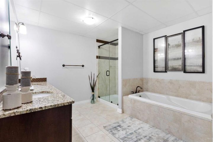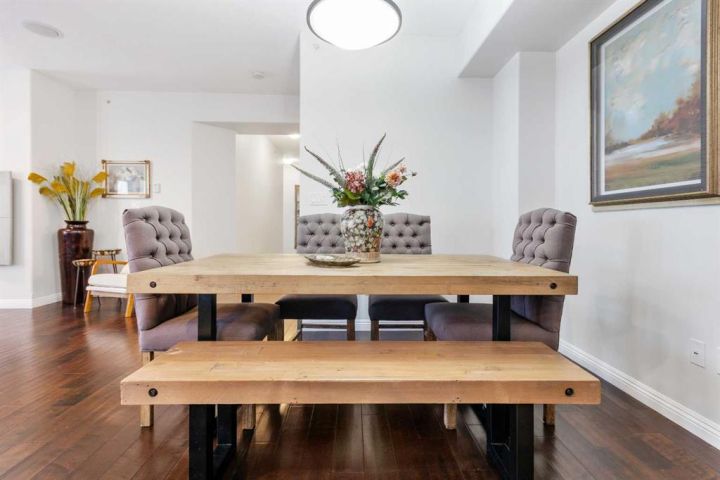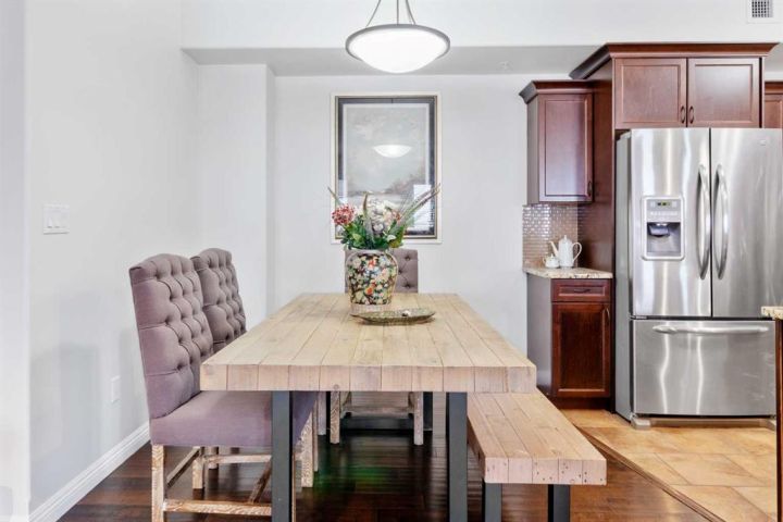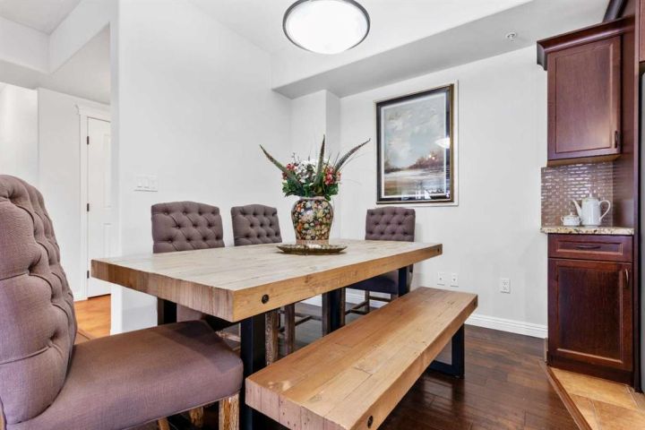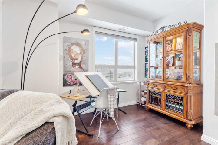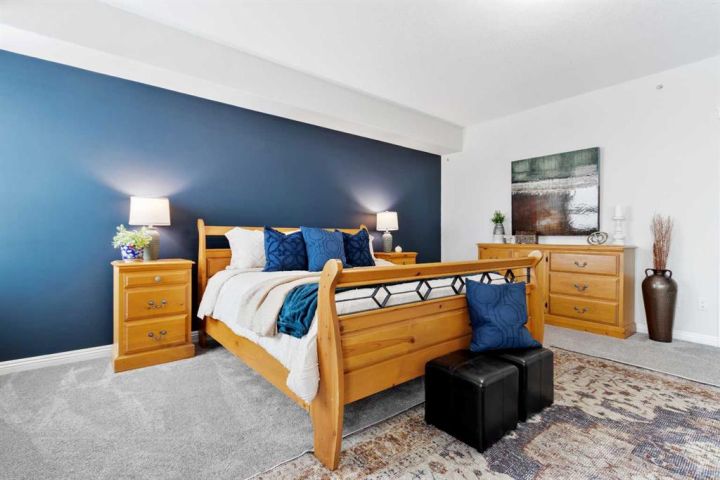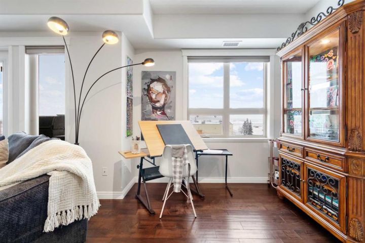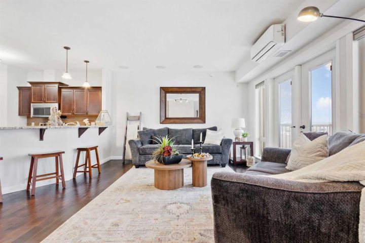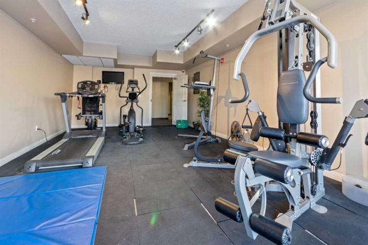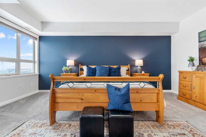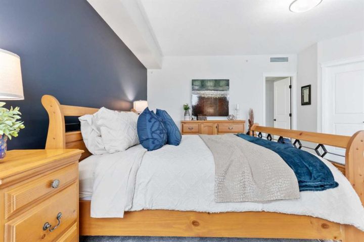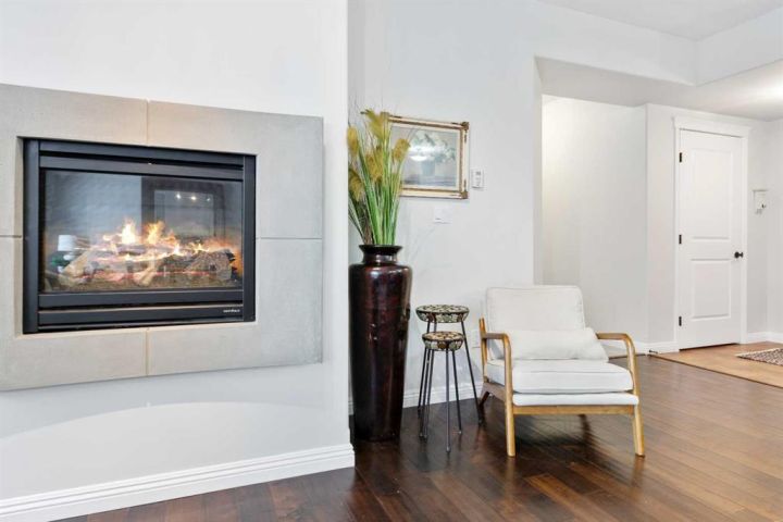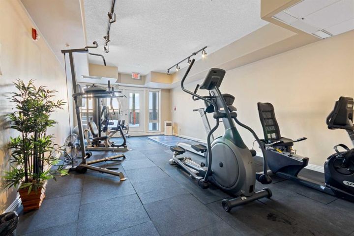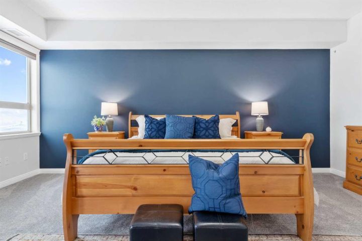 This stunning two-bedroom penthouse suite at Cornerstone is where elevated living and true luxury come together. Filled with natural light from its open layout and expansive windows, the space feels warm, spacious, and immediately impressive. A generous entry welcomes you into a beautifully appointed kitchen with stone countertops that flows seamlessly into the dining area and great room. This is a space designed for both connection and comfort, anchored by a gas fireplace and built-in surround sound, perfect for hosting or unwinding at the end of the day. Step directly from the dining area onto the deck and take in sweeping city views, complete with a gas line for effortless outdoor use. The guest bedroom is impressively sized and features a walk-in closet, offering exceptional storage. The primary suite is a true retreat, complete with its own gas fireplace, a second private balcony, and a spacious ensuite featuring a soaker tub, separate shower, double sinks, and a private water closet, all connected to a large walk-in closet. Cornerstone offers a lifestyle beyond the suite itself, with amenities that elevate everyday living. Residents enjoy access to a fitness room, a beautifully furnished owners’ lounge with an outdoor patio and BBQ, meeting rooms, guest suites, cozy sitting areas, a dedicated mail room, and two elevators. This unit includes all appliances, one titled underground parking stalls, and exclusive access to a resident car wash. This well curated penthouse delivers privacy, comfort, and sophistication an exceptional opportunity for those seeking refined, carefree condominium living at its finest.
