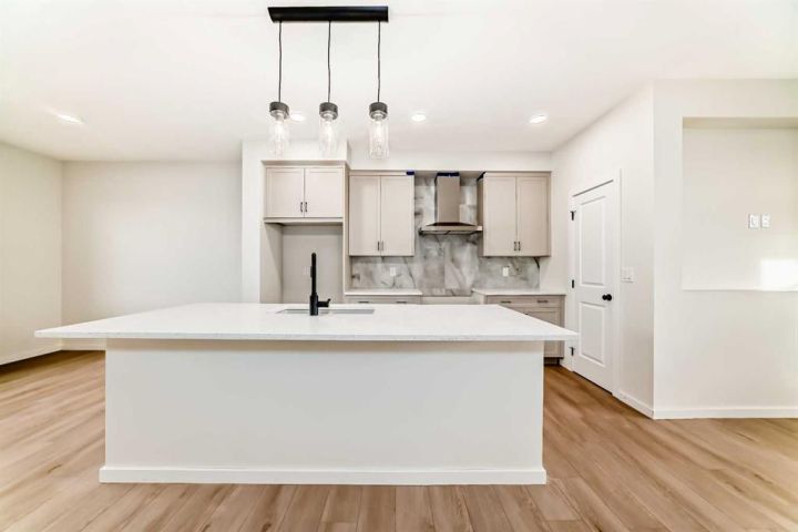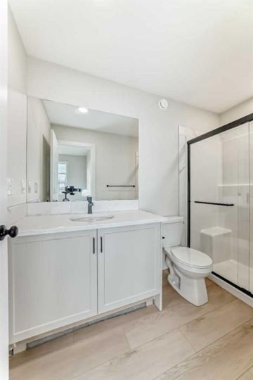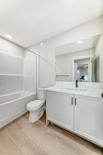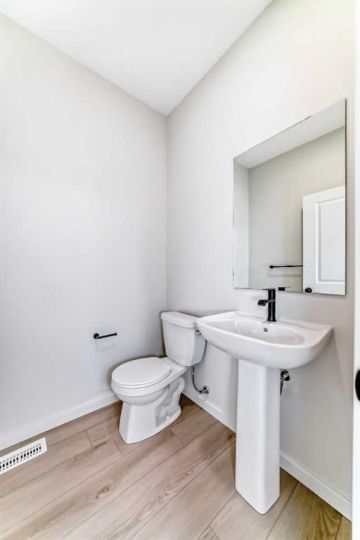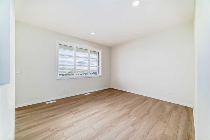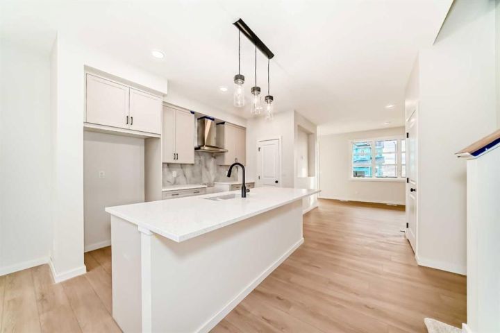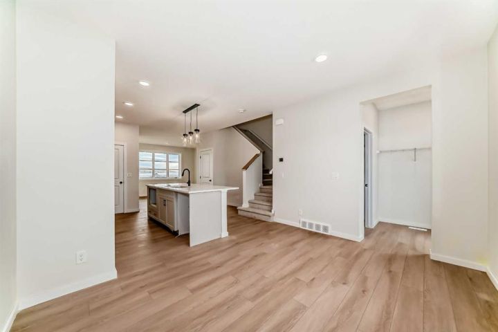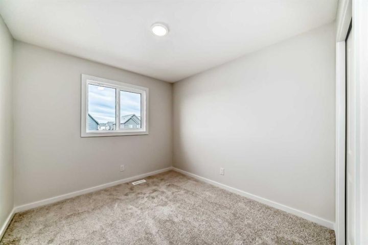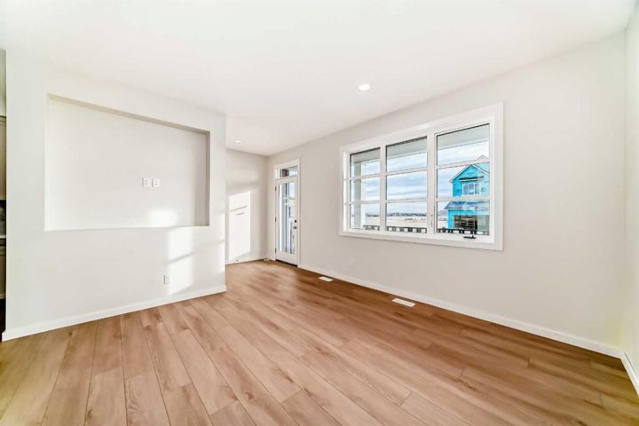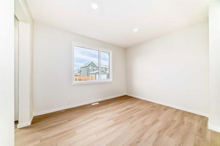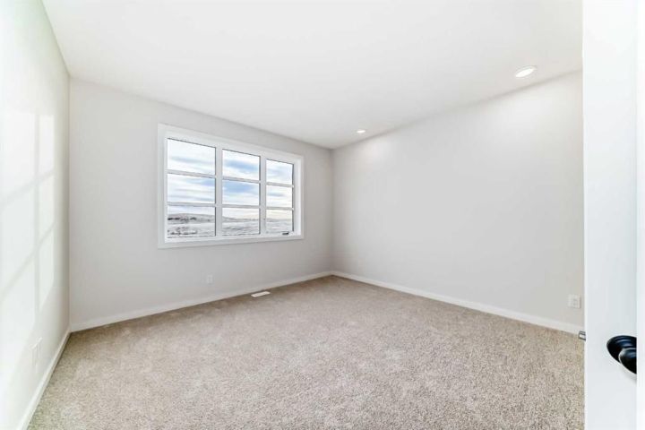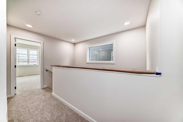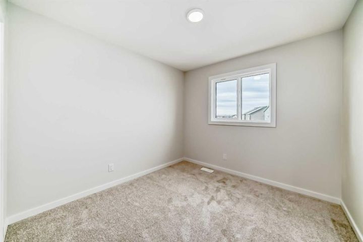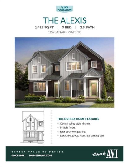 IF YOU’RE GOING TO START SMART, START HERE. This Alexis model in Lanark Landing focuses on functional planning, clean design, and a basement setup that gives you meaningful flexibility without adding future headaches. The main floor opens with 9' CEILINGS and a central galley kitchen that’s designed to work for real everyday life. You get White Rock quartz, a SILGRANIT UNDERMOUNT SINK, 42" UPPERS, classic matte tile backsplash, a CHIMNEY-STYLE HOOD FAN, and a flush 12" breakfast bar that offers actual seating space. The appliance package—Whirlpool fridge, electric range, dishwasher, and BUILT-IN MICROWAVE with trim kit—is already selected and included, matched to the kitchen layout and cabinetry finishes. The dining area and living room each fall naturally off the kitchen, with warm wood LVP spanning the entire main floor for a cohesive, bright look that feels modern without trying too hard. No awkward transitions. No cramped corners. Just a logical, easy-to-furnish flow. Upstairs, the three bedrooms are all properly sized, not token add-ons. The master includes a WINDOWED WALK-IN CLOSET and a clean 3-piece ensuite featuring the UPGRADED 60" × 33" SHOWER with sliding glass door. The full main bath repeats the quartz and tile finishes, and the upper-floor laundry stays exactly where it should—central, but out of the way. The basement is where the long-term planning really shows up. 9' foundation walls, a SEPARATE SIDE ENTRY, a 200 AMP electrical panel, an egress slider window, the standard 3-piece bathroom rough-in, and a UTILITY SINK ROUGH-IN along a dedicated plumbing wall. Whether you’re thinking about future development for living space, workspace, storage, or rental potential down the line, the key structural pieces are already in place. Out back, the 20' × 20' CONCRETE PARKING PAD is poured and ready for future garage planning if that’s on your list. Lanark Landing is steadily filling in with connected PATHWAYS, PARKS, PONDS, PLAYGROUNDS, and multi-use courts that make the community feel lived-in and welcoming. Essentials are nearby, the outdoor spaces are expanding every season, and Yankee Valley Blvd keeps both Airdrie and Calgary conveniently within reach. POSSESSION IS AVAILABLE MID-JANUARY. Book a showing, bring your questions, and see how far smart planning can go. • PLEASE NOTE: Photos are of a DIFFERENT SPEC HOME of the same model – fit and finish may differ. Interior selections and floorplans shown in photos.