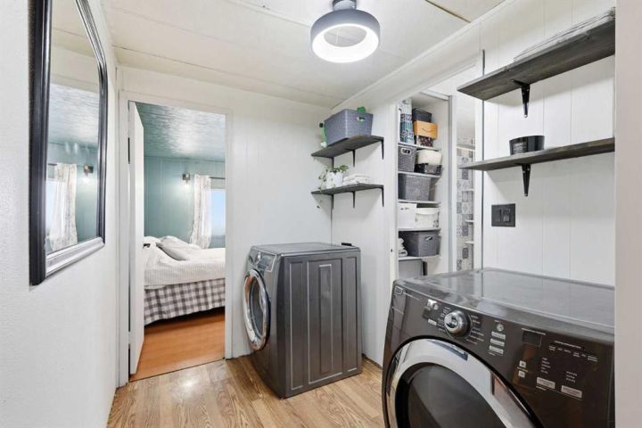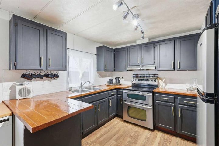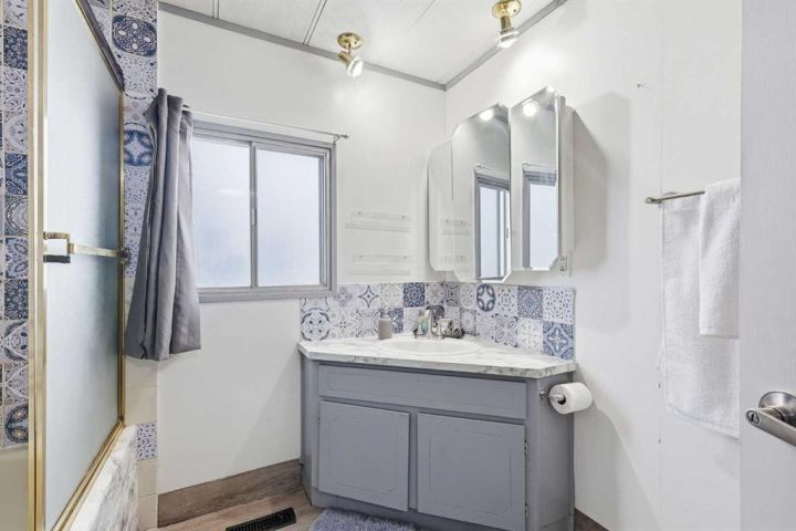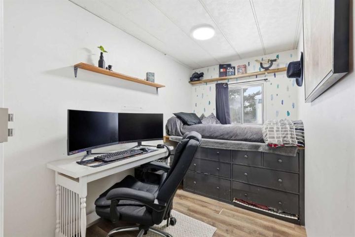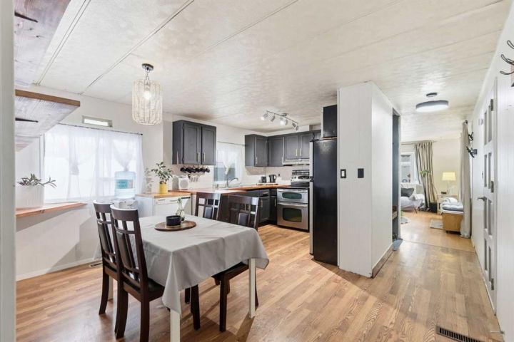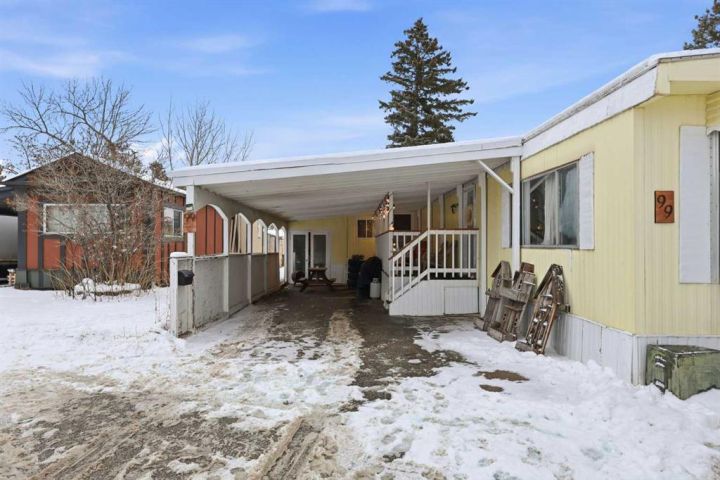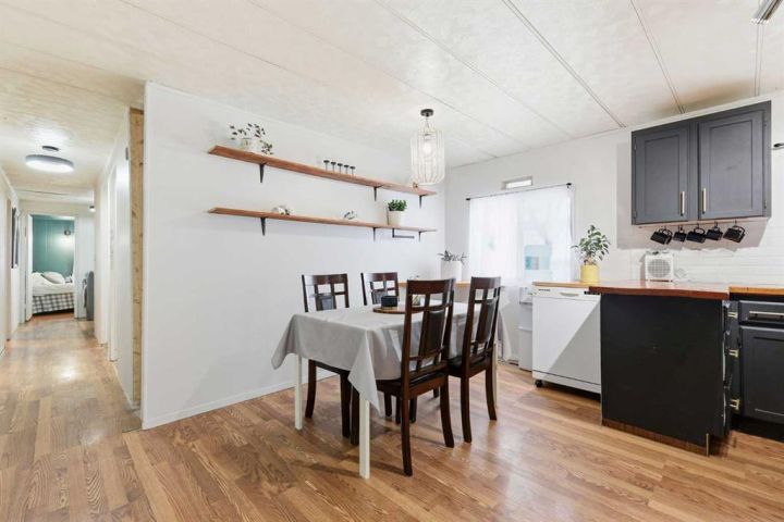Discover great value in this well kept 3 bedroom mobile home located in the highly desirable Greenwood community. Steps from the park entrance, you’re within walking distance to transit, the Calgary Farmer’s Market, dog park, playgrounds, basketball courts, COP, and the community dome. The bright, open living area features a large bay window, and the updated galley kitchen offers wood countertops, stainless steel appliances, and ample storage. The primary bedroom is privately located at the back of the home and includes a walk in closet and built in vanity. Two additional bedrooms and a versatile bonus room provide options for extra storage, a home office or bedroom, or potential second bathroom. Recent updates include a freshly painted home, resealed roof and new roofing over the bonus room. The furnace and hot water tank have been just been replaced to brand new ones (December 2025). An attached carport adds year round parking convenience. Lot fee is $900/month and includes water, sewer, garbage, and recycling. Pet restrictions apply (maximum two pets with park approval). A fantastic opportunity for affordable living in a prime NW Calgary location.