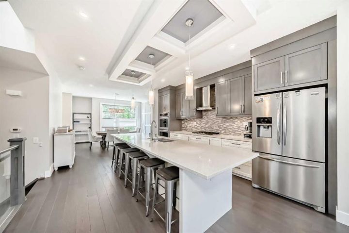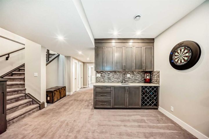 AMAZING LOCATION in sought after GLENBROOK ! This beautifully finished 1,919 ft², 4-bedroom home welcomes you with an inviting entrance that sets the tone for the thoughtful details throughout. The front dining room features up/down blinds for comfort and privacy, enhanced by wainscoting that adds a touch of character. The kitchen is thoughtfully appointed with quartz countertops, two-toned cabinets, double built-in ovens, upgraded appliances, a garburator, and a 5-burner gas stove. The east-facing living room is warm and inviting with a gas fireplace framed by custom bookshelves and built-in cabinetry. At the rear, a well-planned mudroom with storage and a bench keeps everyday family life organized. Upstairs, you’ll find three spacious bedrooms, including a serene primary suite with a custom walk-in closet, blackout/sheer blinds, and a spa-inspired 6-piece ensuite with heated floors, a jetted tub, and a stand-alone shower with a rain head. A sizeable laundry room with cabinets, sink, and folding counter adds both convenience and function. The fully developed basement is designed for entertaining and relaxation with a large family room, wet bar, shuffleboard table, an additional bedroom, and a 4-piece bathroom with in-floor heating. Additional highlights include central air conditioning, aggregate sidewalks, a mature lawn and trees, and a double garage outfitted with slat walls for organization. This inner-city gem is only minutes from downtown, with parks, schools, and convenient transit nearby.