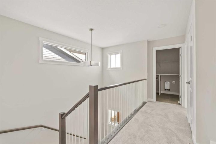 Introducing the Purcell 26 in Livingston - a beautifully curated, move-in-ready home that blends thoughtful design with everyday functionality. Professionally styled with timeless finishes and elevated details, this residence offers versatility for growing families, multigenerational households or investors seeking a polished, turnkey property. With 2,425 sq. ft. of developed living space, the layout provides a flex room, two distinct living areas, three bedrooms, 2.5 bathrooms and an undeveloped basement awaiting your vision. Luxury Vinyl Plank flooring stretches across the main level, setting the tone for a durable yet refined interior. At the heart of the home is a striking kitchen complete with a built-in range hood, island microwave, quartz island and upgraded custom lighting. A full walk-through pantry connects seamlessly to an oversized mudroom, adding everyday convenience and storage. The dining and living spaces span the rear of the home, framed by expansive windows that invite natural light throughout the day. A central gas fireplace with a tiled surround is flanked by symmetrical windows, creating a beautifully balanced focal point. A grand front foyer, dual closets and a 2-pc powder room complete the level. The staircase, finished with natural wood and iron railing, leads to an upper level designed for separation and comfort. A central bonus room sits between the secondary bedrooms and the private primary retreat. The primary suite features generous windows for plenty of natural light, along with a spa-inspired ensuite offering a tiled walk-in shower, a soaker tub, dual vanities and a private water closet. Two additional bedrooms, a 4-pc bathroom and a laundry room with counter space complete the upper floor. A separate side entrance provides direct access to the basement, making it well suited for future development. This brand-new property is move-in ready and includes Alberta New Home Warranty, giving you confidence and peace of mind as you settle into your new home. A rare opportunity to own a beautifully designed Purcell 26—crafted for comfort, style and long-term living.
