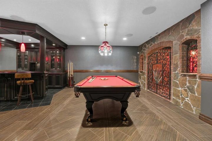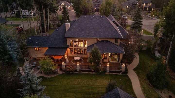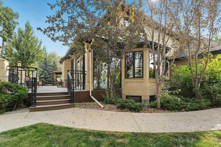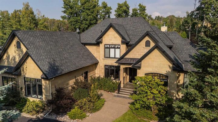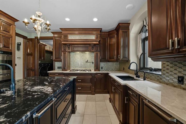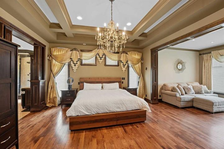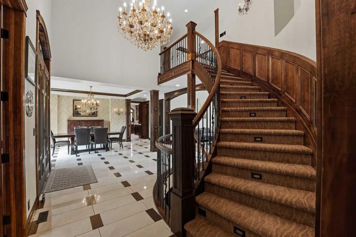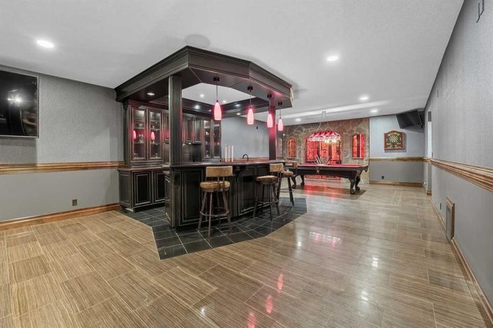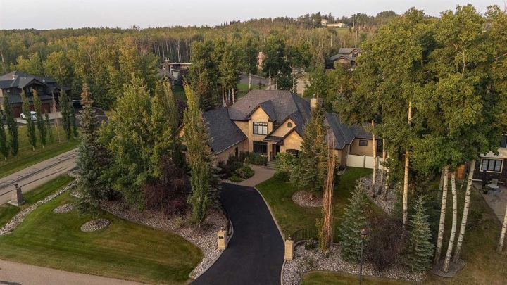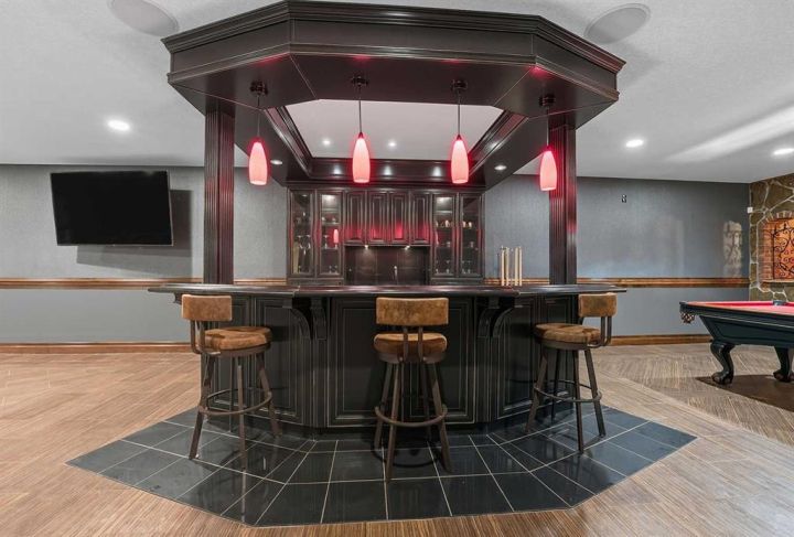 Nestled in the prestigious Jarvis Bay Country Estates, this exceptional executive two-storey residence exemplifies unparalleled craftsmanship & timeless luxury. Boasting an attached four-car garage & a separate heated four-car shop, this one of a kind estate sits on a meticulously landscaped ¾-acre lot, offering privacy & prestige. Striking stone accents, an elegant driveway & impeccable landscaping create breathtaking curb appeal. A grand foyer welcomes you with soaring 18-foot ceilings & a stunning chandelier. The dramatic curved staircase, adorned with rich wood wainscoting & wrought-iron railings, serves as the architectural centerpiece. The formal dining room, complete with built-in wet bar, provides an elegant space for entertaining. The chef’s dream kitchen features ceiling-height custom maple cabinetry, granite countertops, a large centre island with prep sink, full-height decorative tile backsplash, crown moulding & premium appliance package including Thermador & Miele. Complete with pot filler, double ovens & built-in cappuccino machine elevate both form & function. Flooded with natural light, the breakfast nook & adjacent sitting area with gas fireplace flow seamlessly into the sunroom & to the expansive backyard oasis. The breathtaking great room impresses with 18-foot ceilings, extensive millwork, a full wall of windows framing serene views & a magnificent wood-burning fireplace with stacked stone & maple surround. A private main floor office with custom built-ins offers an ideal work-from-home retreat. The luxurious primary suite is a true sanctuary, featuring coffered ceilings, a private den with fireplace & wet bar & a spa-inspired ensuite with heated floors, dual vanities, makeup station, oversized glass steam shower with dual heads & body jets & an extraordinary walk-in closet with glass shoe displays, maple millwork & centre island. Upstairs, a lofted overlook connects two generous bedrooms, two well-appointed bathrooms, one private ensuite & double doors that open into a fully soundproof, two-tiered home theatre a cinematic masterpiece with custom millwork, wet bar & dramatic pillars. The fully developed lower level offers a fourth bedroom with ensuite, expansive recreation area, wet bar, dedicated poker & billiards zones, a stunning stone-clad wine room, flexible bonus room/gym & a convenient men’s washroom with urinal—all warmed by in-floor heat. Outdoor living is elevated with a massive two-tiered composite deck partially covered, built-in outdoor stone fireplace & discreet outdoor two-piece bathroom. Professionally landscaped grounds feature mature trees, raised stone flower beds, aggregate walkways, underground sprinklers & full vinyl fencing. Car enthusiasts will revel in the detached 25’x26’ heated shop with vaulted ceilings, 220V wiring, in-floor heat & integrated sound system, complemented by the attached 23’x24’ garage with epoxy floors & dual bays. No expense has been spared, a rare offering of luxury, functionality & impeccable design