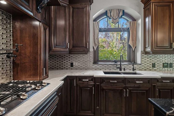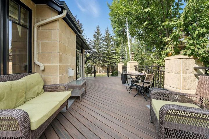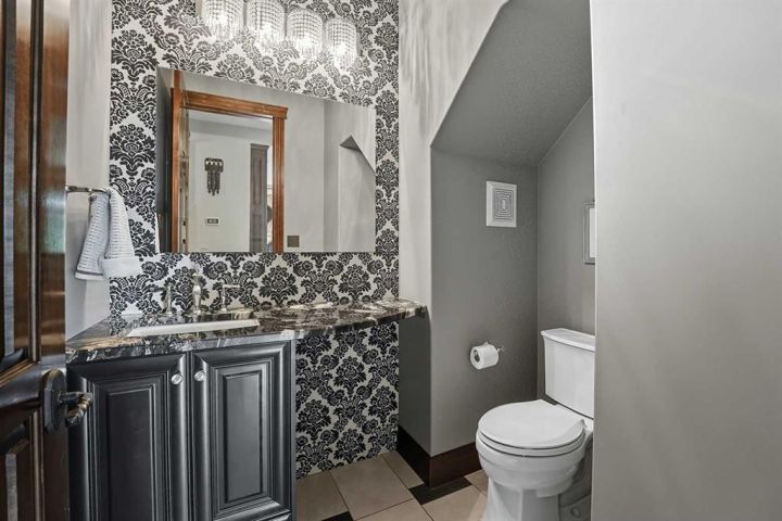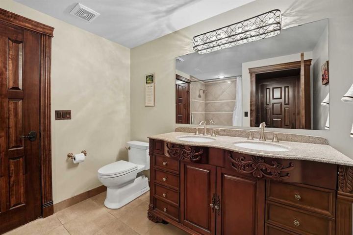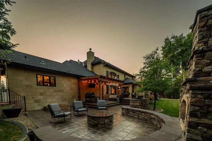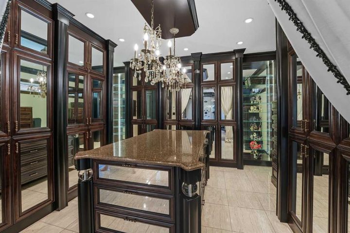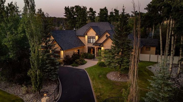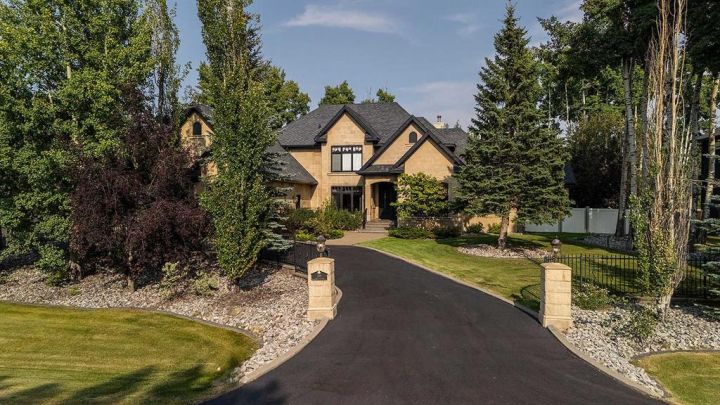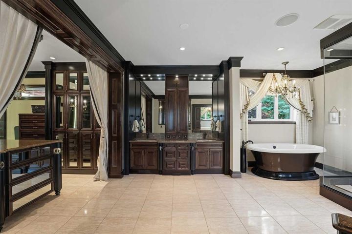 Nestled in the prestigious Jarvis Bay Country Estates, this exceptional executive two-storey residence exemplifies unparalleled craftsmanship & timeless luxury. Boasting an attached four-car garage & a separate heated four-car shop, this one of a kind estate sits on a meticulously landscaped ¾-acre lot, offering privacy & prestige. Striking stone accents, an elegant driveway & impeccable landscaping create breathtaking curb appeal. A grand foyer welcomes you with soaring 18-foot ceilings & a stunning chandelier. The dramatic curved staircase, adorned with rich wood wainscoting & wrought-iron railings, serves as the architectural centerpiece. The formal dining room, complete with built-in wet bar, provides an elegant space for entertaining. The chef’s dream kitchen features ceiling-height custom maple cabinetry, granite countertops, a large centre island with prep sink, full-height decorative tile backsplash, crown moulding & premium appliance package including Thermador & Miele. Complete with pot filler, double ovens & built-in cappuccino machine elevate both form & function. Flooded with natural light, the breakfast nook & adjacent sitting area with gas fireplace flow seamlessly into the sunroom & to the expansive backyard oasis. The breathtaking great room impresses with 18-foot ceilings, extensive millwork, a full wall of windows framing serene views & a magnificent wood-burning fireplace with stacked stone & maple surround. A private main floor office with custom built-ins offers an ideal work-from-home retreat. The luxurious primary suite is a true sanctuary, featuring coffered ceilings, a private den with fireplace & wet bar & a spa-inspired ensuite with heated floors, dual vanities, makeup station, oversized glass steam shower with dual heads & body jets & an extraordinary walk-in closet with glass shoe displays, maple millwork & centre island. Upstairs, a lofted overlook connects two generous bedrooms, two well-appointed bathrooms, one private ensuite & double doors that open into a fully soundproof, two-tiered home theatre a cinematic masterpiece with custom millwork, wet bar & dramatic pillars. The fully developed lower level offers a fourth bedroom with ensuite, expansive recreation area, wet bar, dedicated poker & billiards zones, a stunning stone-clad wine room, flexible bonus room/gym & a convenient men’s washroom with urinal—all warmed by in-floor heat. Outdoor living is elevated with a massive two-tiered composite deck partially covered, built-in outdoor stone fireplace & discreet outdoor two-piece bathroom. Professionally landscaped grounds feature mature trees, raised stone flower beds, aggregate walkways, underground sprinklers & full vinyl fencing. Car enthusiasts will revel in the detached 25’x26’ heated shop with vaulted ceilings, 220V wiring, in-floor heat & integrated sound system, complemented by the attached 23’x24’ garage with epoxy floors & dual bays. No expense has been spared, a rare offering of luxury, functionality & impeccable design