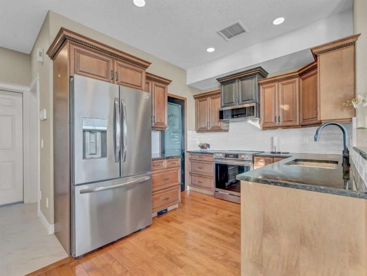 Take in the beautiful river valley views from this spacious 3-bedroom executive condo in the Palisades. This unique three-story walkout is designed to make the most of the scenery, with large picture windows on the main and upper levels that fill the home with natural light and frame the stunning landscape. The layout is perfect for anyone wanting extra space or privacy, as each floor features its own bedroom and bathroom. Whether you have family staying with you or guests visiting, everyone can enjoy their own comfortable area. Inside, the home features quality finishes throughout, including maple cabinetry, granite countertops, stylish flooring, and a full appliance package. The condo has been well cared for and offers a warm and inviting feel the moment you walk in. The Palisades is a one-of-a-kind development in Medicine Hat, built into the hillside so every unit benefits from the gorgeous river hills and valley views. It’s a quiet, scenic place to call home! This condo truly needs to be seen in person to appreciate everything it offers—come take a look and enjoy the view for yourself!