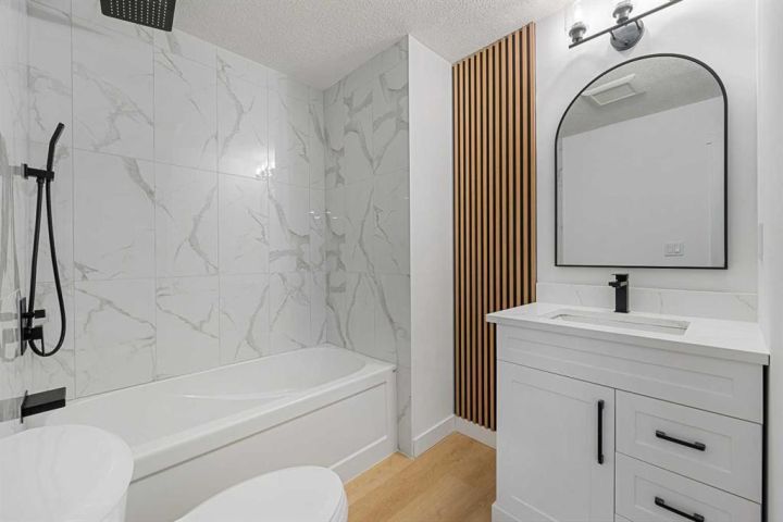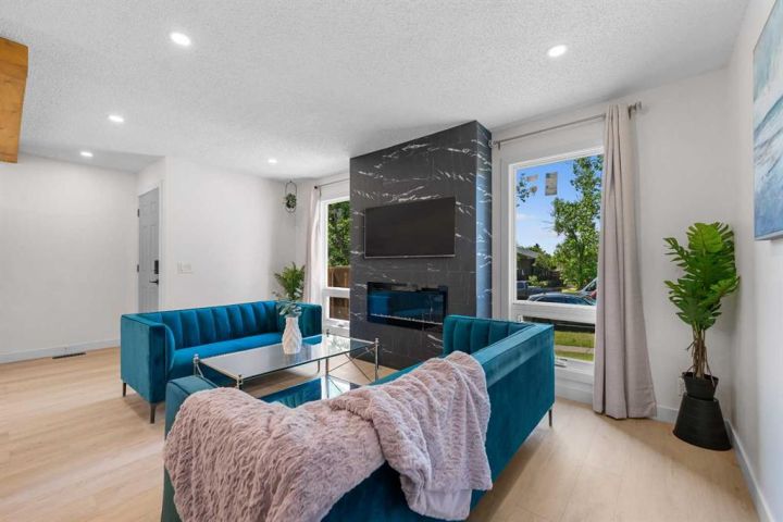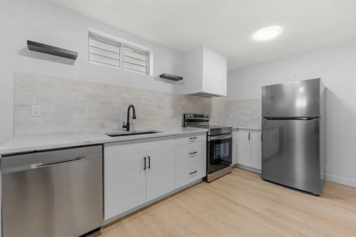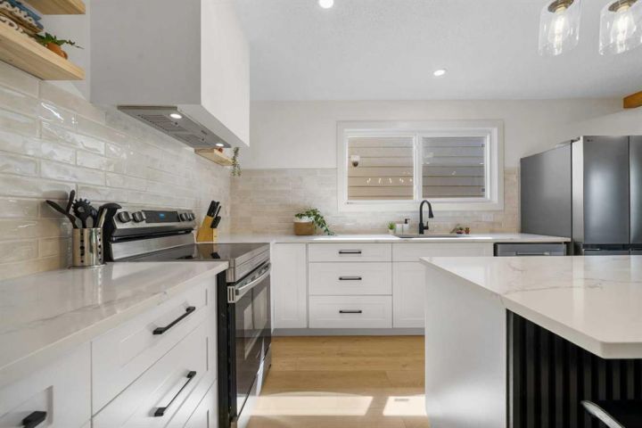 **OPEN HOUSE SAT/SUN 1-4PM** Welcome to "Paradise at Berkley"! This 5 bed + 2.5 bath fully remodeled semi-detached Bungalow with a WALKOUT Basement has been thoughtfully REMODELED from the studs up in a modern farmhouse style. With a beautifully finished 2 bed + 1 bath illegal SUITE, this home offers the perfect balance of family living with a downstairs rental, or a multi-generational household. With Brand NEW PLUMBING throughout the entire home, this property makes an incredible investment! Inside, the Open Concept floor plan is bursting with style. Superior craftsmanship is showcased throughout — from the massive Oak BEAM framing the kitchen paired with 8mm light oak LUXURY VINYL PLANK flooring running seamlessly across the home, custom 'hidden' laundry tucked behind dual Barn Doors, and new windows that flood the home with natural light. Your guests will love cozy evenings around the custom electric fireplace, where elegant tilework and a tailored frame add warmth and sophistication. The chef-inspired kitchen is a showstopper, featuring a statement Custom Range Hood, Quartz Countertops with an undermount Composite Sink, light oak Floating Shelves, a spacious Black Fluted Island with breakfast bar, matte black Hardware, a striking cloudy tile backsplash — all tied together with a full suite of Stainless Steel Appliances. The main level features 3 spacious bedrooms and 1.5 baths, including a tranquil primary suite with a VIEW and walk-through closet leading to the private ensuite bath. The Walkout Basement offers a spacious 2 bed + 1 bath illegal SUITE, designed with the same attention to detail — featuring a second CUSTOM Kitchen with crisp white cabinetry, black matte Hardware, and modern finishes throughout. Enjoy the backyard, offering a private space for your family, or tenants and access to your oversized driveway. Whether you’re looking to live up, rent down, or run an Airbnb (as the current owners have successfully done over the summer months), your options are endless. Don’t miss your chance to own ‘Paradise at Berkley’.