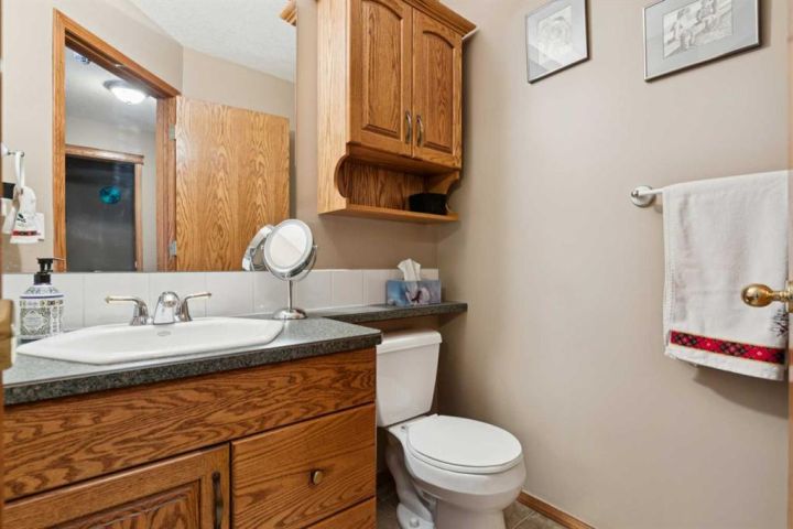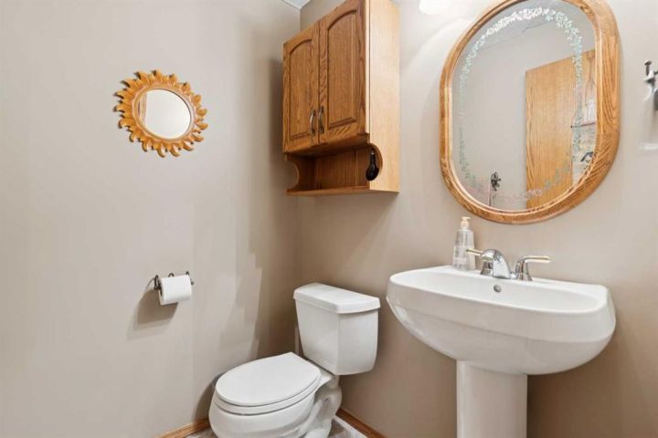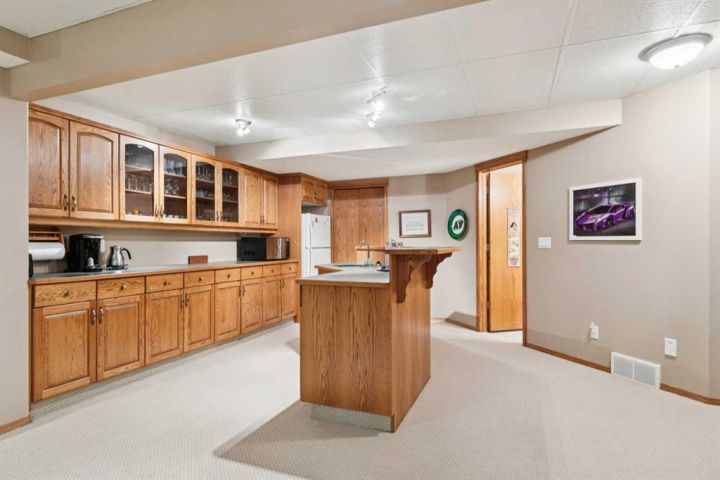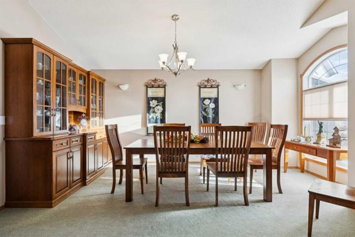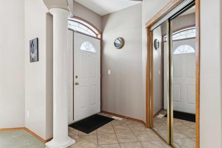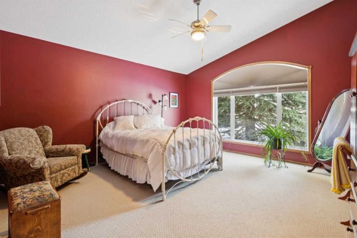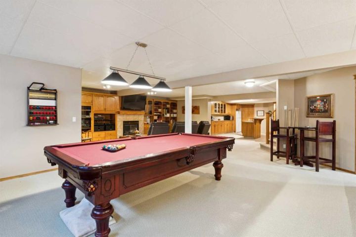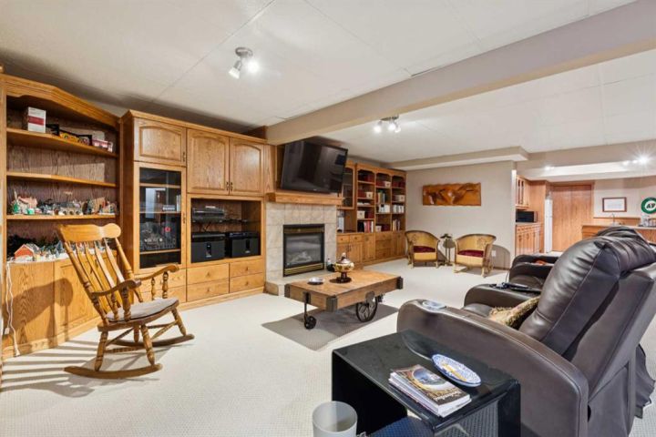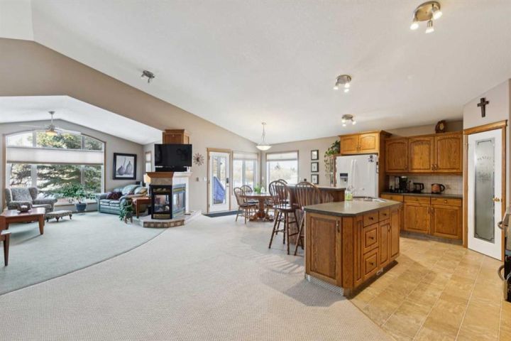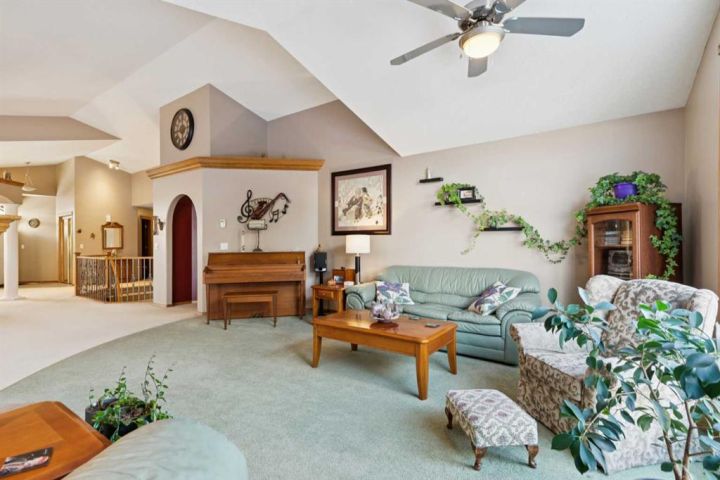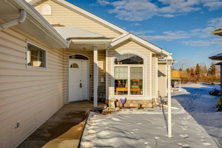 Welcome to 123 Whispering Way, an exceptional 45+ luxury villa that blends elegant design with the ease of low-maintenance living. Thoughtfully crafted and impeccably maintained, this sprawling home offers nearly 2,000 sq.ft. on the main level plus a beautifully developed lower level—perfect for those who want the convenience of condo living without sacrificing space, comfort, or style. Step through the grand front foyer and instantly feel the openness created by vaulted ceilings, a spacious front hall with closet, and an inviting flow into the formal dining area. The heart of the home is the impressive kitchen, featuring a raised eating bar, corner pantry, abundant shaker cabinetry, and newer stainless-steel dishwasher and stove—ideal for entertaining or daily enjoyment. Adjacent to the kitchen, the cozy breakfast nook overlooks the beautifully landscaped backyard and shares a charming double-sided gas fireplace with the formal living room. Enjoy serene views with no neighbours behind, mature trees, shrubs, and a newly refinished deck—enjoy your private outdoor retreat. The main-floor primary suite is a true sanctuary, offering a 5-piece spa-inspired ensuite, complete with deep soaking tub, dual vanities, fully enclosed shower with built-in seat, and a generous walk-in closet with custom built-ins. A dedicated office/den, convenient main-floor laundry, and a 2-piece powder room off the garage entry complete this level. The oversized heated garage is a dream—finished, equipped with a natural-gas heater, and includes a fridge, freezer, that stay with the home. Downstairs, a dramatic curved staircase leads to a spectacular lower level featuring a second gas fireplace with elegant tile surround, a massive open family and games area, and a well-appointed wet bar with fridge and pantry. Perfect for hosting large gatherings or creating the ultimate entertainment zone. This level also hosts two additional bedrooms—one with its own 3-piece ensuite and large closet—plus another 2-piece bathroom and abundant under-stair storage. Additional features include Air conditioning, In-floor heating (basement), Updated fixtures, Beautiful landscaping & private yard, Free RV parking, Social room access for all owners This is elevated living at its best—where refined finishes, everyday comfort, and effortless convenience blend seamlessly in a serene, park-like environment. Opportunities in this sought-after complex are rare. Schedule your private showing today and discover the exceptional lifestyle awaiting you at 123 Whispering Way.