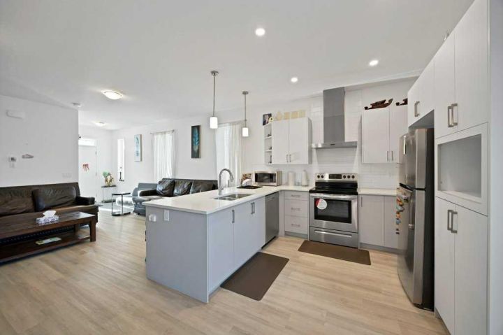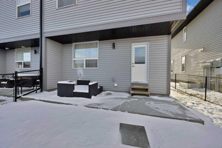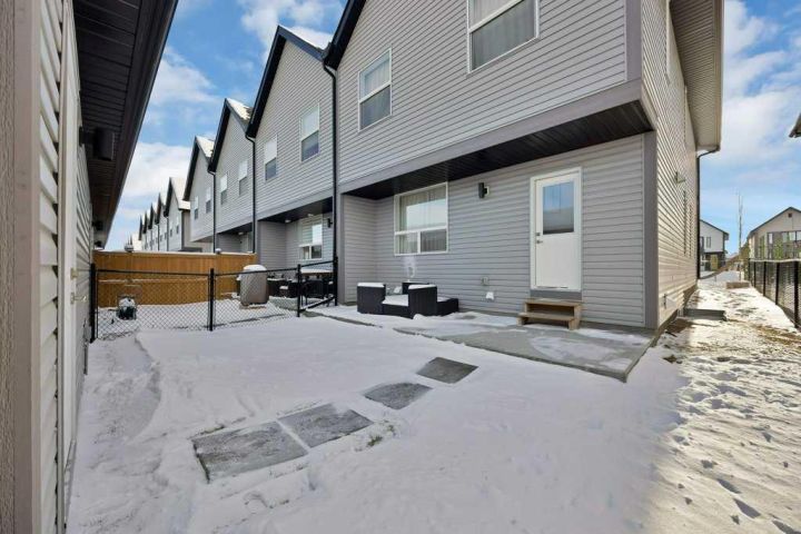 Welcome to this No Condo Fees townhouse, corner lot in the heart of Airdrie.! Discover exceptional value in this 2022-built centre-unit row townhouse, combining modern design, energy efficiency, and an unbeatable location. . This corner unit offers bright, neutral interior and low-maintenance laminate flooring to create a fresh, contemporary feel throughout the open-concept main floor. At the entrance, you're welcomed with an open floor plan, with a den, a large living area, a separate dining area, and a large kitchen with stainless steel appliances. The impressive kitchen features quartz countertops, stainless steel appliances, ample cabinetry, and plenty of workspace—perfect for both daily use and entertaining. Backyard is equipped with a large concrete patio and a double detached garage, perfect for your winter escape. The upper level is thoughtfully designed with three generous bedrooms, a convenient laundry room, and a versatile office perfect for home working individuals. The primary suite overlooks a beautifully maintained green space and includes a walk-in closet and a private 4-piece ensuite. Two additional bedrooms are served by a full main bathroom. The semi-finished basement provides excellent potential for future development, A standout feature is the detached, insulated double garage paired with a double parking pad.