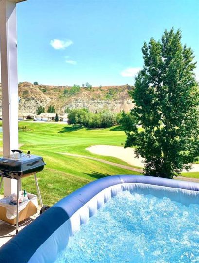 Welcome to Paradise Canyon 410-B Canyon Blvd W Lethbridge Property. Incredible luxury condo living right on the 15th Fairway of the prestigious Paradise Canyon Golf Course. This two bedrooms two bathrooms home is the bottom unit B and above is Unit A, this property has been upgraded on the interior. It has a vinyl plank flooring, granite countertops in kitchen and bathrooms. The Primary bedroom is spacious and boast of four piece ensuite with Jetted tub. The secondary bedroom very cleverly has a custom built Murphy bed. The 32 foot southeast-facing deck gets fantastic morning and midday sun and shade in the evening. A hidden gem, boasts breathtaking views of the Old Man River Valley, with lush greenery, and rolling hills that provide a stunning backdrop for outdoor enthusiasts. Whether you enjoy hiking, biking or simply taking leisurely stroll, the nearby trails and parks invites you to explore the beauty of nature right at your doorstep. Discover the allure of this community where nature meets community. Paradise Canyon is a perfect balance of its stunning natural landscapes and compliments the vibrant lifestyle of southern Alberta which offers slower-paced ambience and will appeal to those who enjoy spending time outdoors. This part of the city is excellent for those who like quiet surroundings, as the streets are usually specially peaceful. This condo building has no connection to Paradise Canyon Golf Course & Resort amenities. Important condo bylaw - No Short Term Rentals Allowed.