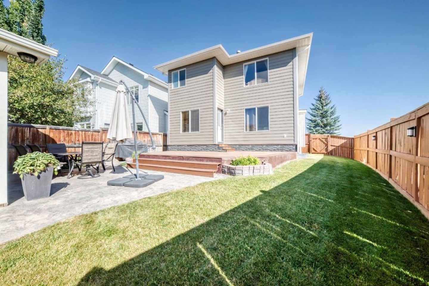 Welcome to this well-kept two-storey home in Chaparral offering over 2,600 sq. ft. of functional living space. The main floor features a bright, open layout with a comfortable living room, dining area, and practical kitchen with plenty of counter space and a pantry. From the dining area, step out onto the private deck — a great spot for summer BBQs or morning coffee. Upstairs you’ll find three good-sized bedrooms, including a primary bedroom with a walk-in closet and 4-piece ensuite. The two additional bedrooms each have walk-in closets and share a Jack & Jill bathroom. There is also a den that works well as a home office, playroom, or flex space. The fully finished basement adds a fourth bedroom, full bathroom, family room, recreation area, and extra storage. One of the standout features is the garage setup — a double attached front garage plus a single detached garage with paved alley access. Located on a quiet street close to the ridge and within walking distance to Fish Creek Provincial Park, the home is also near schools, shopping, parks, groceries, and has easy access to Stoney Trail and Macleod Trail. The home has been well maintained and is move-in ready.