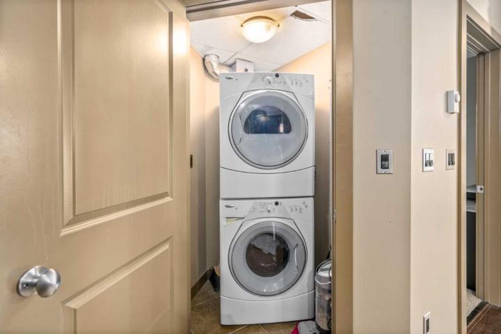 Dishwasher, Electric Stove, Microwave, Refrigerator, Washer/Dryer Stacked, Window Coverings