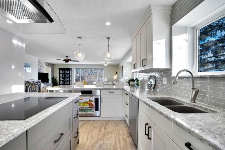 Welcome to 911 6 Street in High River! This charming, well-loved home offers 1542 SF of comfortable living space with five bedrooms and three full bathrooms, perfect for families, guests, or those needing extra room for work or hobbies. The entire house has been updated with granite counters, new cabinets, completely renovated bathrooms, new flooring and so much more. Come home to warm and inviting features such as a cozy fireplace, look out enormous newer windows, and enjoy this 6,000 SF lot with south and west facing fully landscaped back yard. The attached double garage is almost 600 SF and is insulated and heated. In the basement you will find tons of storage, 3 bedrooms and a new dry bar with enough cabinet space for a full kitchen. Emerson Lake Estates is a friendly, community-oriented neighbourhood where you will enjoy the best of small-town living with quick access to schools, parks, recreation facilities, and local amenities, all while being just a short commute to Calgary. This property blends comfort, convenience, and flexibility. A wonderful opportunity for anyone looking to settle into the welcoming community of High River.