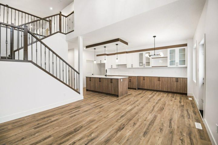Welcome home to this newly built Kismet 2 model in Liberty Landing. This beautifully designed home features an impressive open-to-above entryway and living room. The main floor includes a walk-in closet, a den, a full bathroom, a well-appointed kitchen, and a convenient spice kitchen. Upstairs, you’ll find a spacious bonus room that overlooks both the front and back of the home, along with a comfortable primary bedroom complete with a 5-piece ensuite. Two additional generous bedrooms and the upper-level layout offer great functionality for family living. The basement is unfinished and includes a separate entrance, providing excellent future development potential.