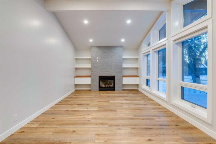 *** Open House - Saturday December 13th from 2-4PM and Sunday December 14th from 12-2PM *** Welcome to our beautifully remodelled bungalow in the highly coveted community of Lakeview. The bright and modern main level is showcased with vaulted ceilings, floor to ceiling windows, and a warm and inviting gas fireplace in the living area. The open concept design allows seamless transition into the kitchen and dining area, complete with stainless steel appliances, a granite waterfall countertop and a full height pantry. A bespoke powder room sits just off the main living area before you walk down the hallway, where you will find a contemporary 4 piece bathroom, and three bedrooms, all with new carpet. Each room has new large casement windows with coverings, and recessed lighting. Downstairs you’ll find an oversized and secluded gym area with plenty of storage, before entering the family room, complete with electric fireplace and trendy hearth. A wet bar is roughed in, should you choose to complete the rec room conversion, perfect for entertaining and game nights. Down the hall you’ll find another 3 piece bathroom with full shower and niche, two additional bedrooms, and a finished laundry room, with sink and central vac system. This stunning home underwent extensive renovations completed in 2023, including new windows and James Hardie siding, as well as new soffits, gutters and roofing. The beautiful front yard is complete with low maintenance hardscape and a patio, perfect for your morning coffee. The backyard boasts a large deck with pergola as well as a fresh lawn and beautiful landscaping. Mature trees in both the front and back add extra privacy and serenity to the outdoor spaces, perfect for relaxation or hosting. The oversized double garage is insulated and finished, giving it a clean and open aesthetic, complete with work bench, storage cabinets and 220V power. Situated on a secluded crescent, but just minutes from Crowchild and Glenmore, this is truly an unbeatable location. Lakeview and Earl Grey Golf Clubs, North Glenmore Park and the Glenmore Athletic Park are all within walking distance, along with numerous schools, parks and walking paths. Don’t miss your opportunity to check out this gorgeous property; reach out to your realtor today to book a showing before it’s too late!