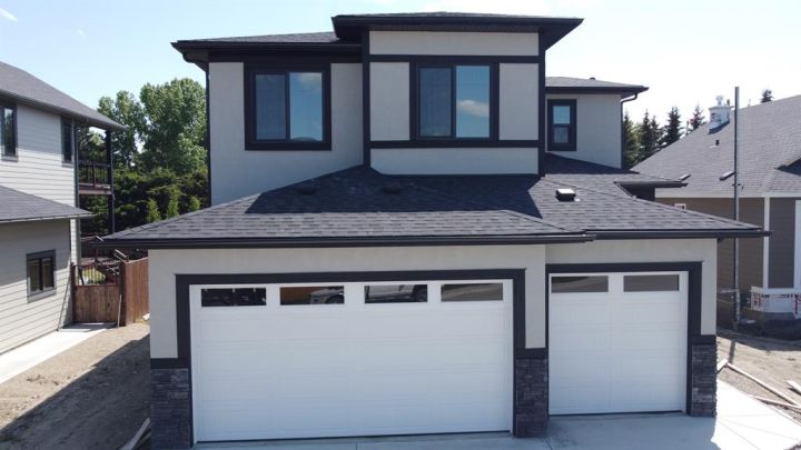 If you’re looking for a new executive home on one of the most desirable lots in Olds, don’t miss this custom-built detached two-story located in The Vistas, just minutes from the hospital and shopping. Situated on a premium oversized lot backing onto walking paths, this home offers over 2,450 sq. ft. of developed living space above grade, featuring 4 bedrooms, 2.5 bathrooms, and a 30-ft wide attached triple-car garage. The wide-open floor plan is perfect for families seeking both elegance and functionality. High-end finishes are featured throughout, including luxury vinyl plank flooring on the main floor and much of the upper level, plush carpet in the bedrooms, and tile flooring in all bathrooms. Enter through the grand front foyer or directly from the triple-car garage into a spacious mudroom with walk-through butler’s pantry. A main-floor flex room—complete with a closet—offers versatility as an office, den, or 4th bedroom. The impressive kitchen is the heart of the home, showcasing quartz countertops, tile backsplash, soft-close cabinetry, and a large central island with undermount sink and dishwasher. The walk-through butler’s pantry provides exceptional storage. Natural light floods the main living space through triple-pane windows, offering beautiful views of the treed natural setting to the south. The living room features a stunning gas fireplace with a quartz stacked surround, creating a warm and inviting atmosphere. Upstairs, enjoy a spacious bonus room with a built-in entertainment niche—ideal for family gatherings. This level also includes 3 generous bedrooms, a 4-piece main bathroom, a hall linen closet, and a well-appointed laundry room with tiled floors, sink, and window. The show-stopping primary suite features a tray ceiling, oversized windows, a large walk-in closet, and a luxurious 5-piece ensuite complete with a walk-in glass shower, soaker tub, and extra-long dual-sink vanity. The unfinished basement includes rough-ins for a future washroom and offers a blank canvas to customize the space to suit your family’s needs. This executive custom-built home is move-in ready and truly worth viewing—an exceptional opportunity to own a premium property in one of Olds’ most sought-after subdivisions.