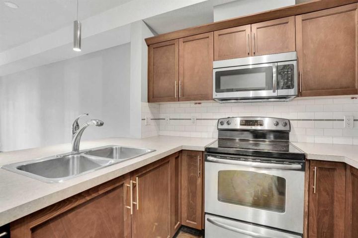 Welcome to Red Haus, a well-cared-for and pet-friendly community in the heart of Royal Oak, where up to two pets are permitted with no weight restrictions. This inviting 1-bedroom, 1-bathroom condo offers 607 sq ft of efficiently designed living space with an open layout, high ceilings, and great natural light throughout. The modern kitchen includes stainless steel appliances, ample cabinet space, and a comfortable breakfast bar, while a dedicated office desk area provides a convenient spot for work or study. Step out onto your private balcony to enjoy the sunshine or grill using the natural gas hookup. Additional features include in-suite laundry, a HEATED underground TITLED parking stall, and a secure TITLED storage unit. Residents also have access to an impressive clubhouse with a lounge area, pool table, full kitchen, upper-level seating, and a well-equipped gym with a walkout patio. Ideal for first-time buyers, downsizers, or investors, this home offers exceptional value in one of NW Calgary’s most desirable communities.