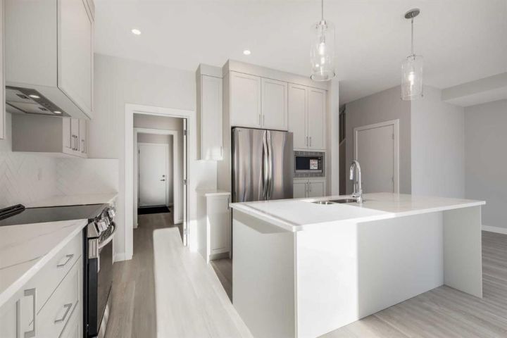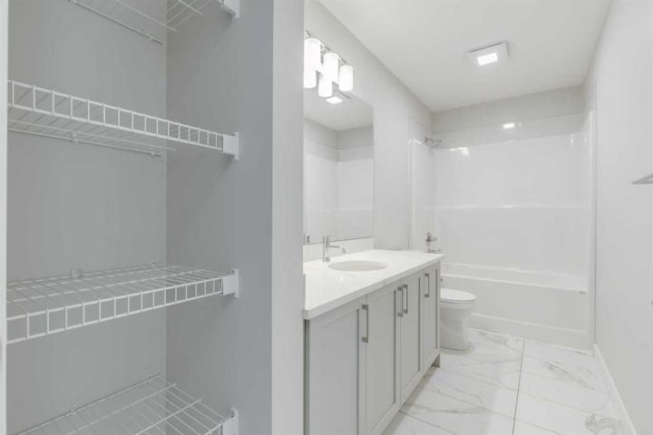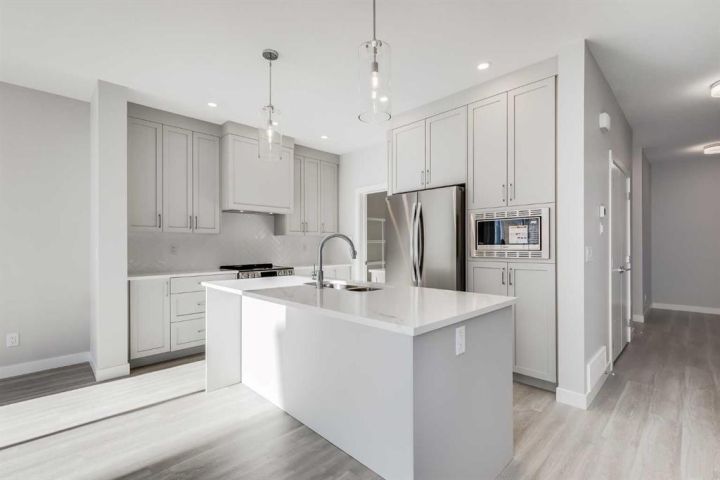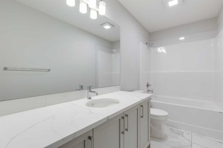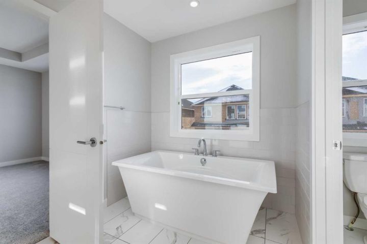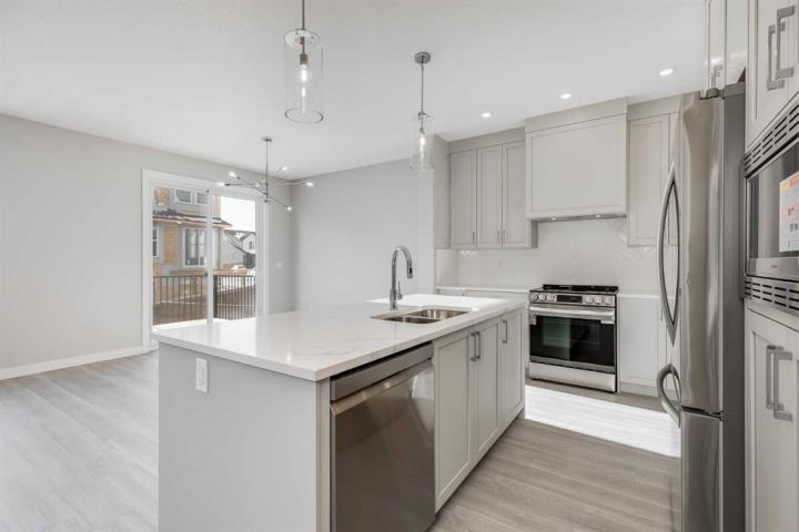 Looking for space, sunshine, and style? This NEW South Point home delivers big on all 3! A spacious 3-bedroom, 2.5-bath home that offers over 2,200 sq.ft. of thoughtfully designed living space, highlighted by 9' ceilings on both the main floor and the bright sunshine basement. The open-concept main level features large windows, a modern kitchen with quartz countertops throughout, sleek cabinetry, a walk-in pantry, and a welcoming island with a breakfast bar. The dining area opens effortlessly into the Great Room, creating a warm and inviting space for everyday living. Upstairs, you’ll find a central bonus room, a full laundry room with washer and dryer, and a comfortable primary retreat complete with a walk-in closet, soaker tub, and double vanity. The sunshine basement offers incredible natural light and excellent potential for future development, while the double attached garage adds everyday convenience. Located in the family-friendly community of South Point, home to nearby schools, parks, playgrounds, sports courts, and a large community dog run, this property blends comfort, functionality, and modern style. With South Point Village just minutes away, all essential amenities are close at hand. A beautiful home in a community that truly has it all. Book your viewing today.